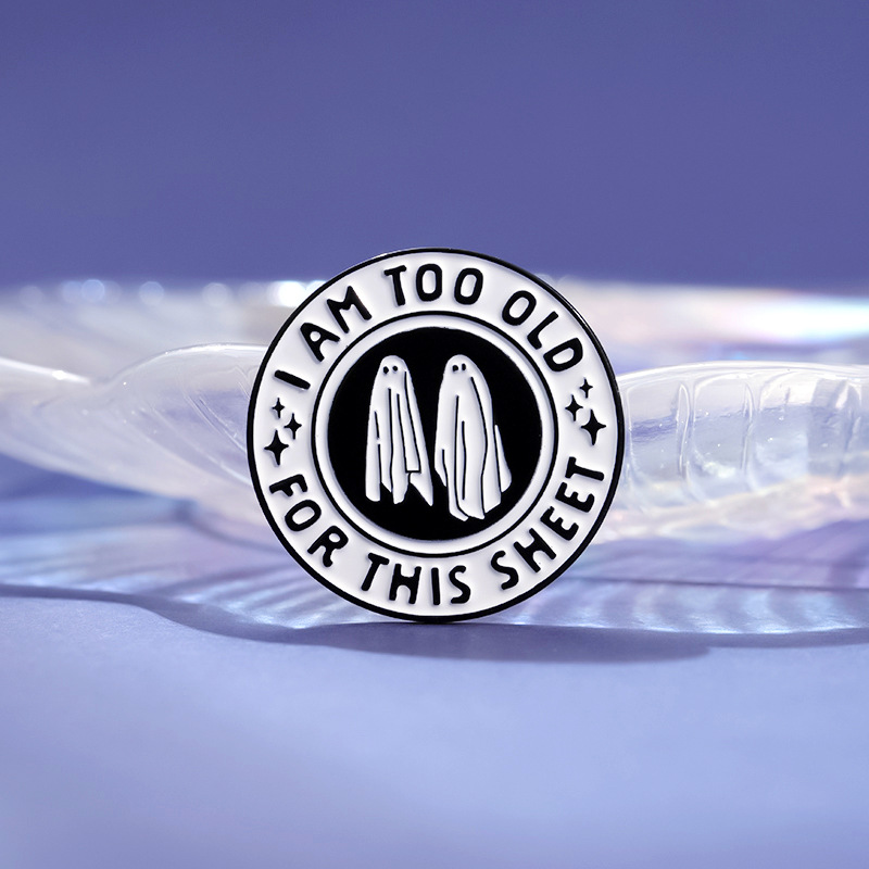 个性创意万圣节黑白色圆形合金胸针可爱卡通幽灵烤漆徽章跨境配饰 投诉