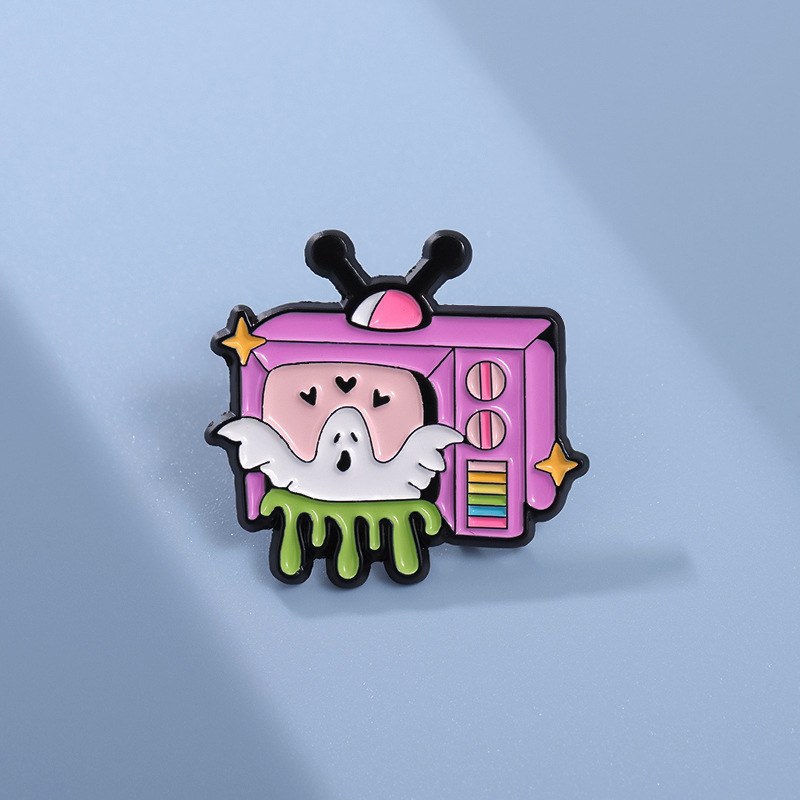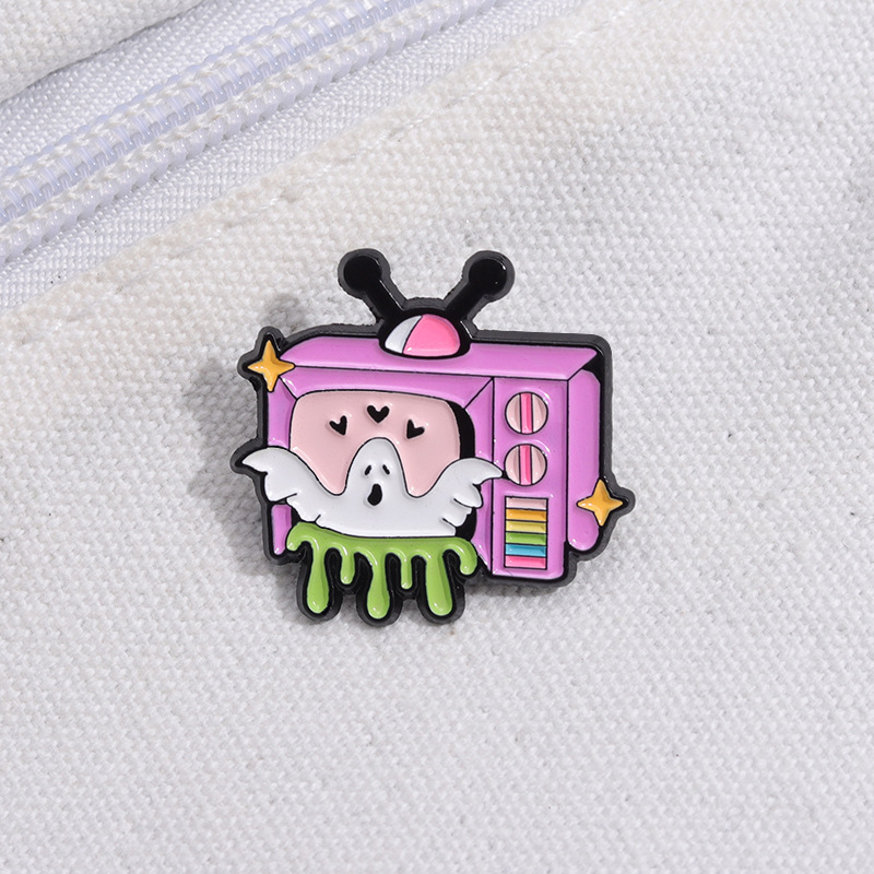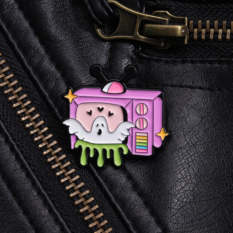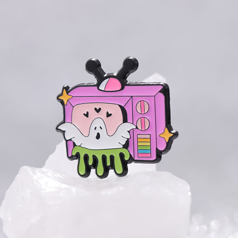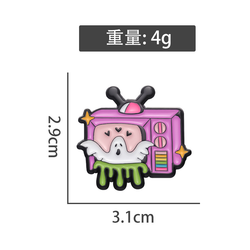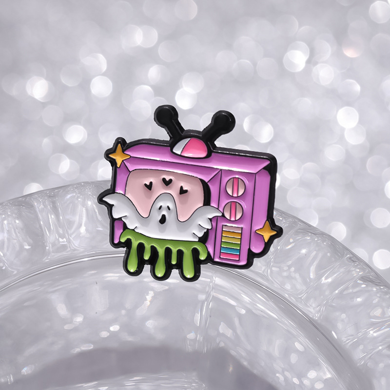 新款卡通趣味白色幽灵电视机造型周边徽章 可爱合金配饰胸针批发 投诉