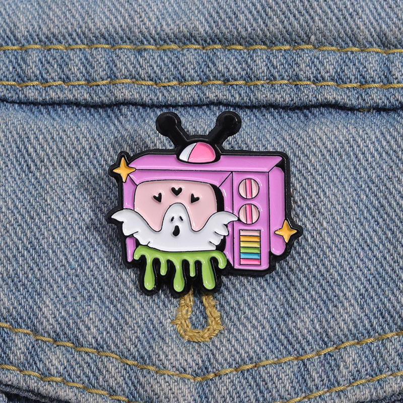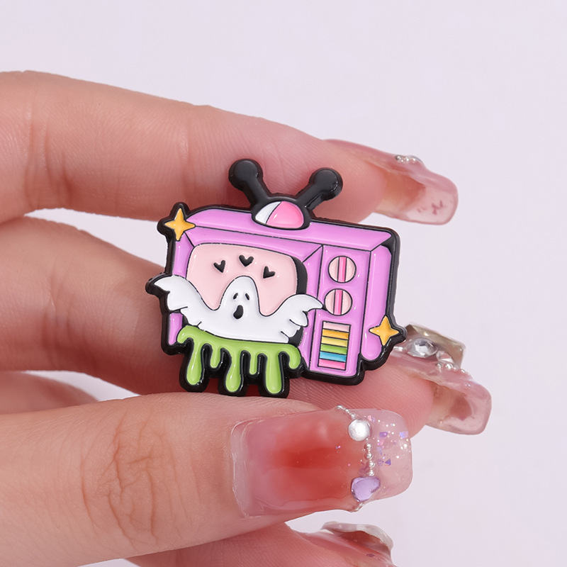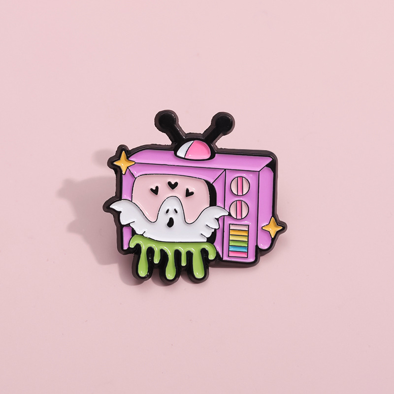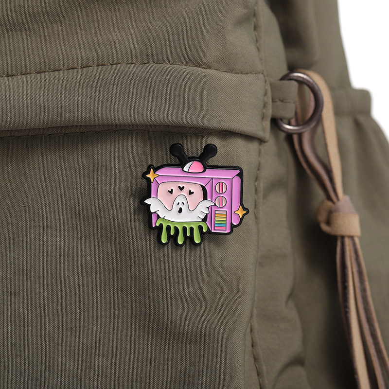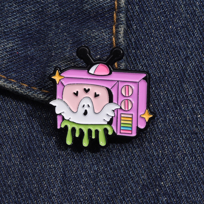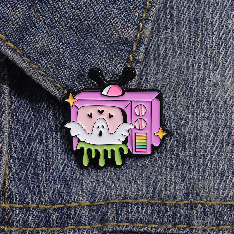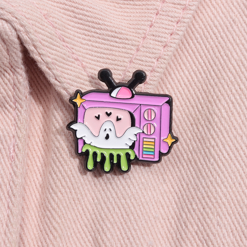 新款卡通趣味白色幽灵电视机造型周边徽章 可爱合金配饰胸针批发 投诉