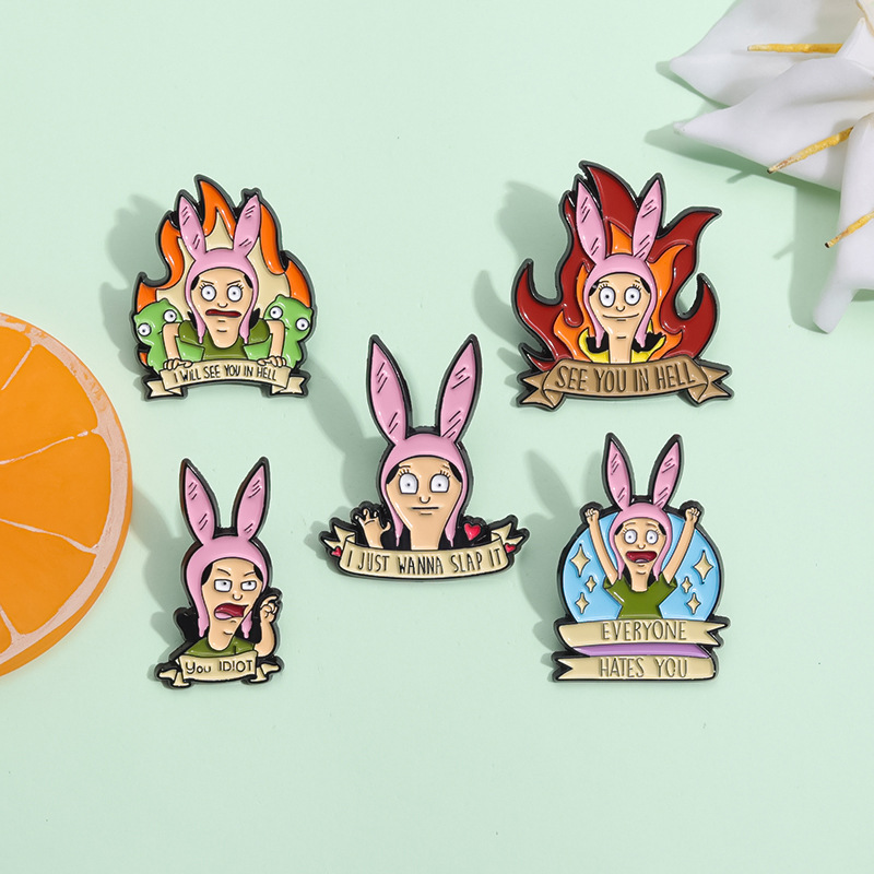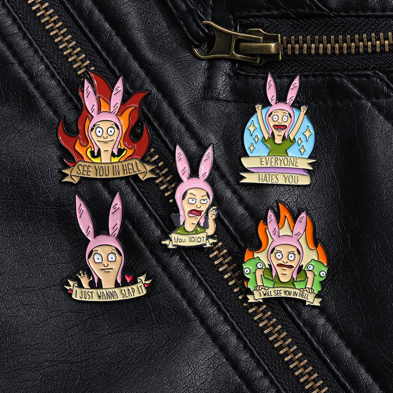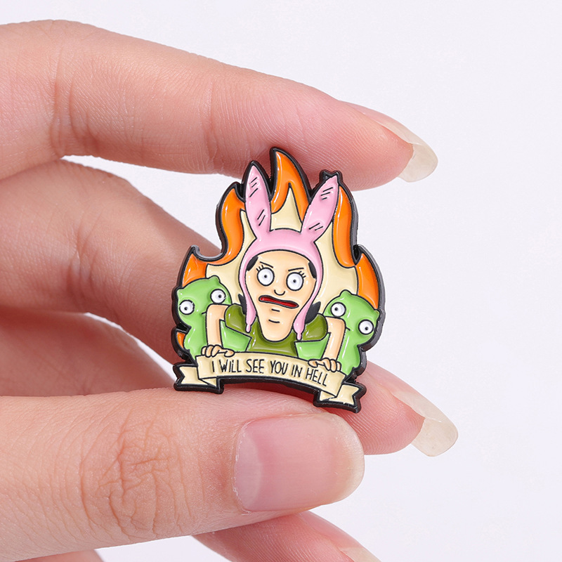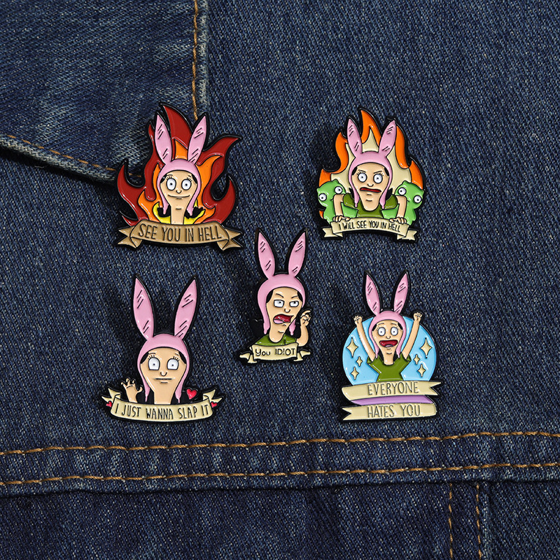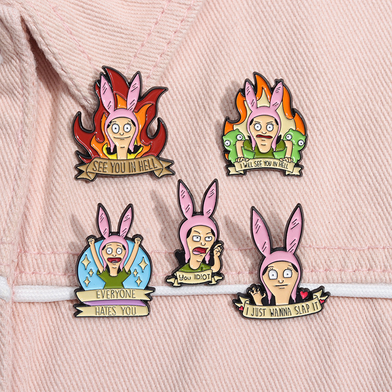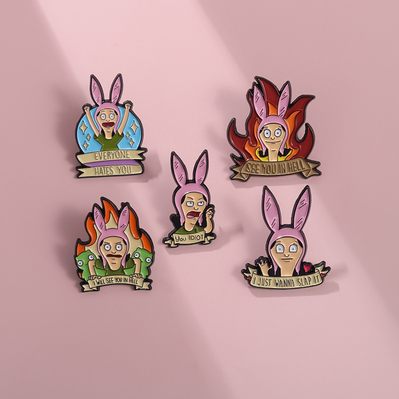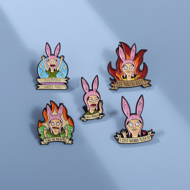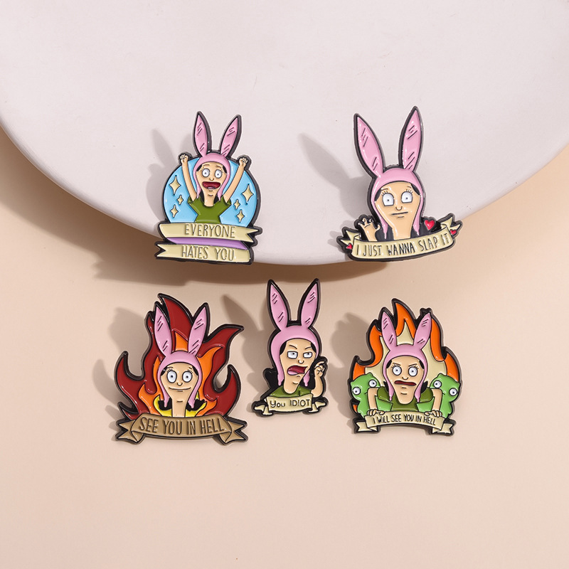 跨境电商新款愤怒的卡通少女合金装饰扣针背包帽子趣味百搭徽章扣 投诉
