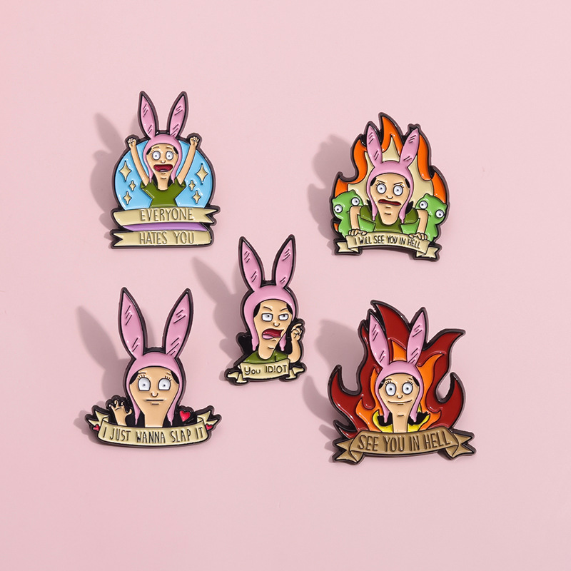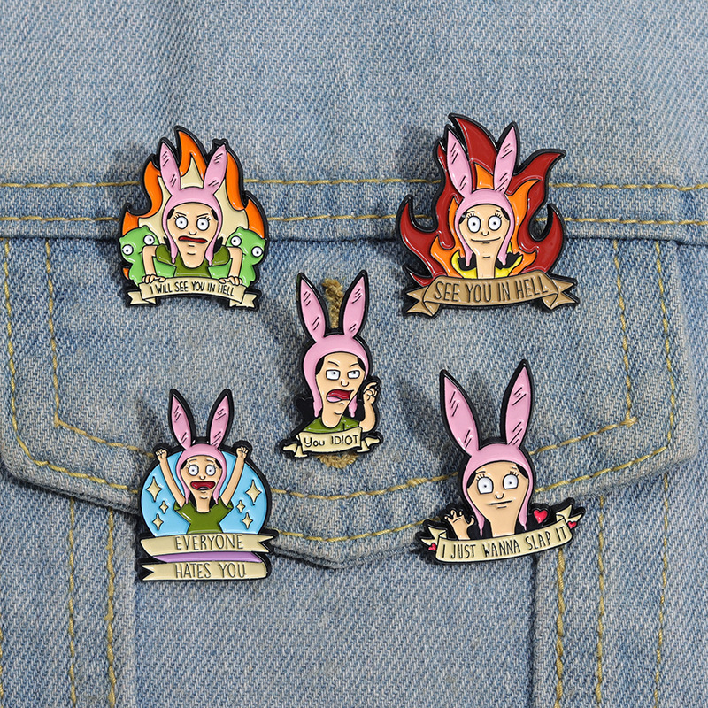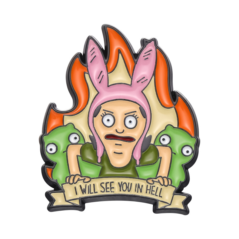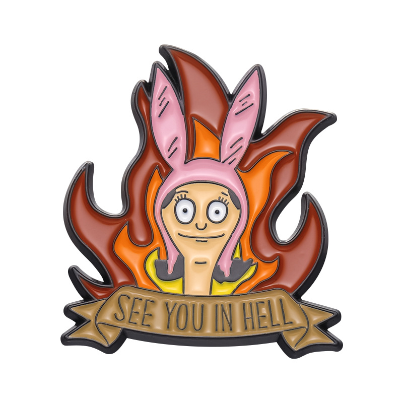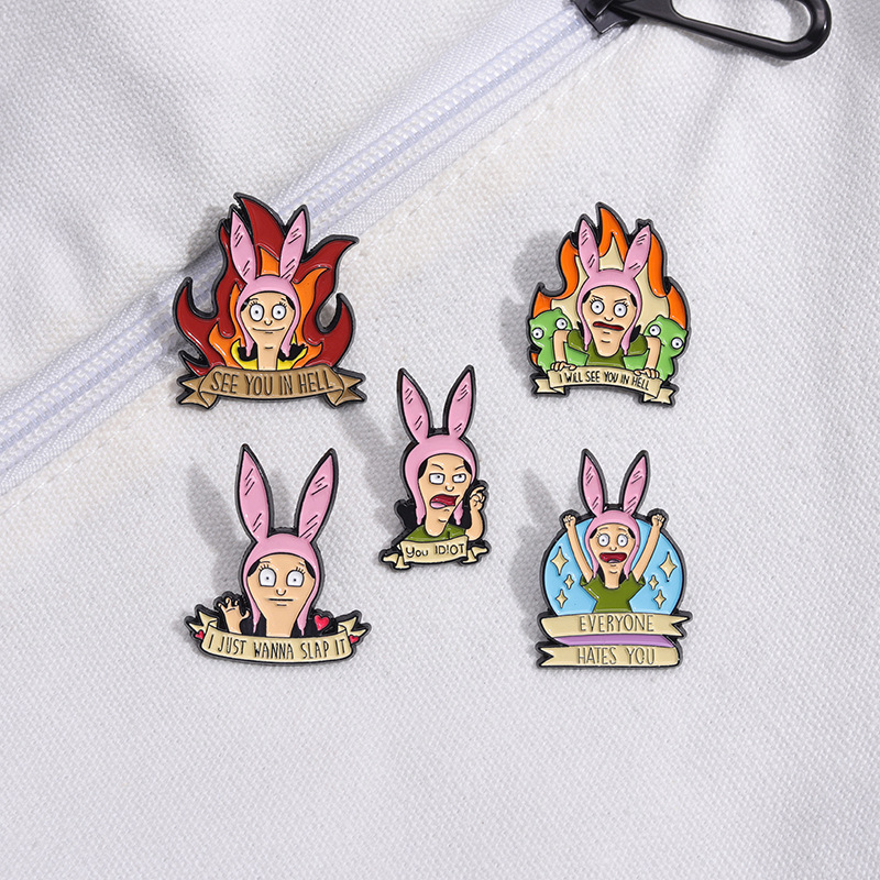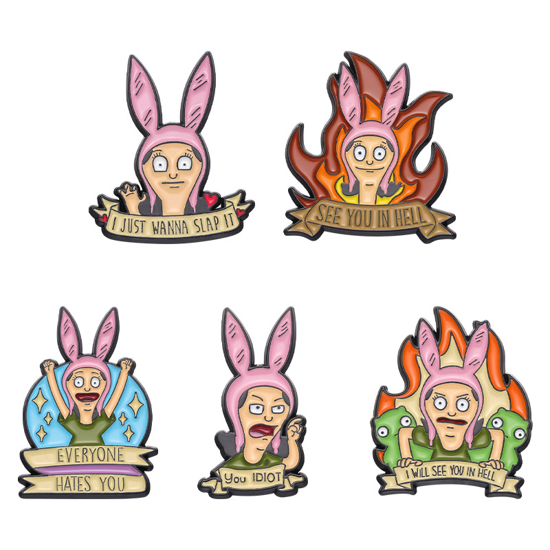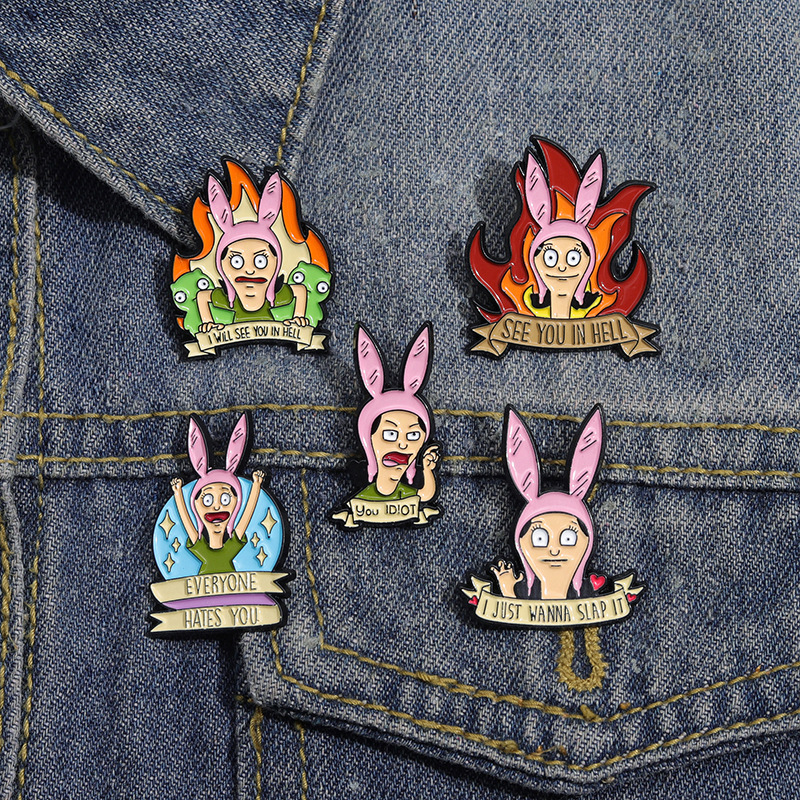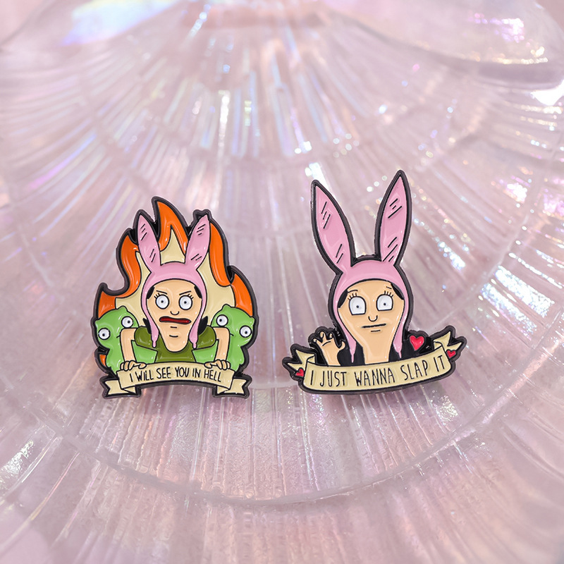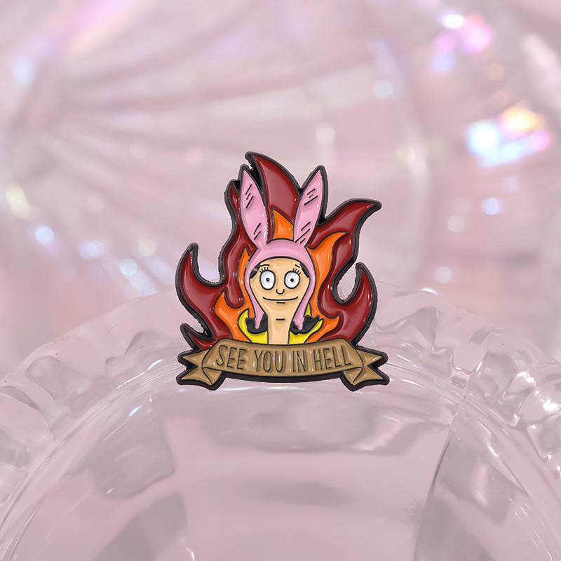 跨境电商新款愤怒的卡通少女合金装饰扣针背包帽子趣味百搭徽章扣 投诉