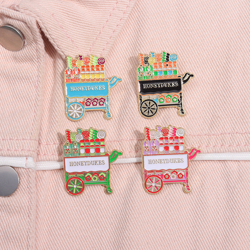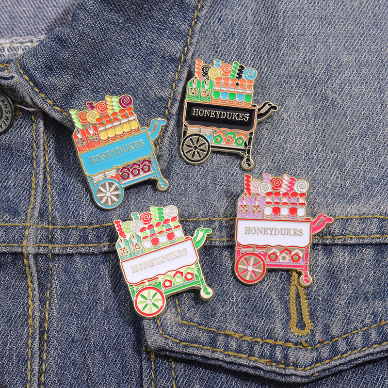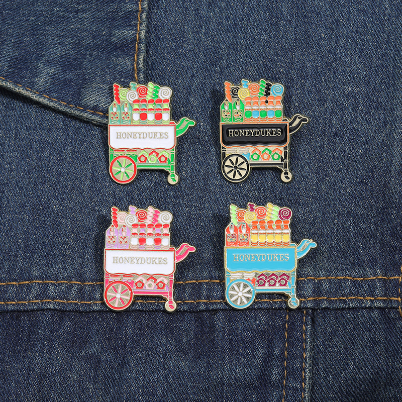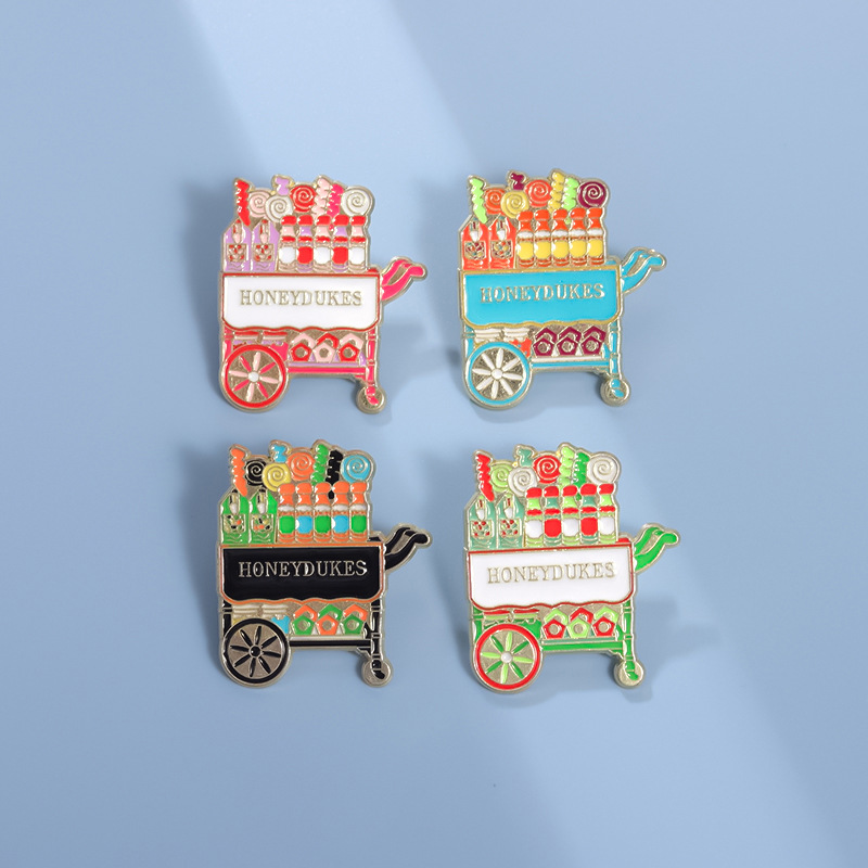 外贸创意新品可爱手推车造型胸针卡通个性彩色糖果车配饰金属徽章