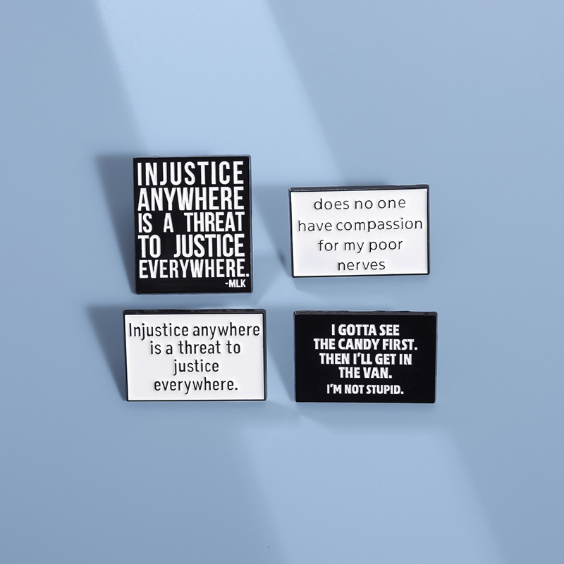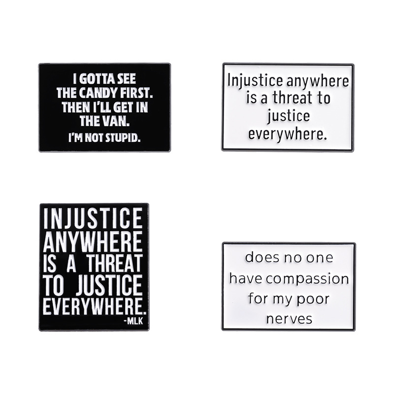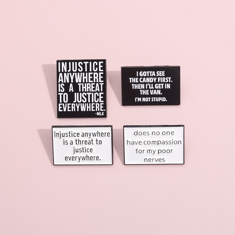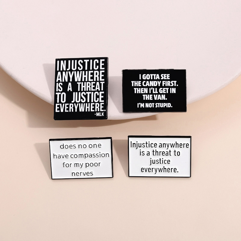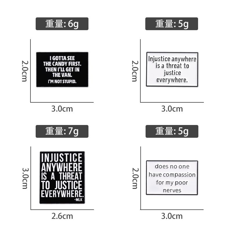 亚马逊个性新品热销 创意英文短句胸针 简约黑白字母配饰金属徽章 投诉