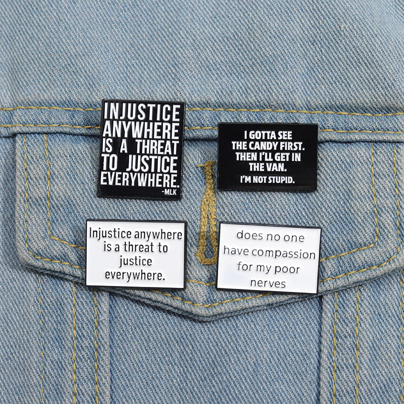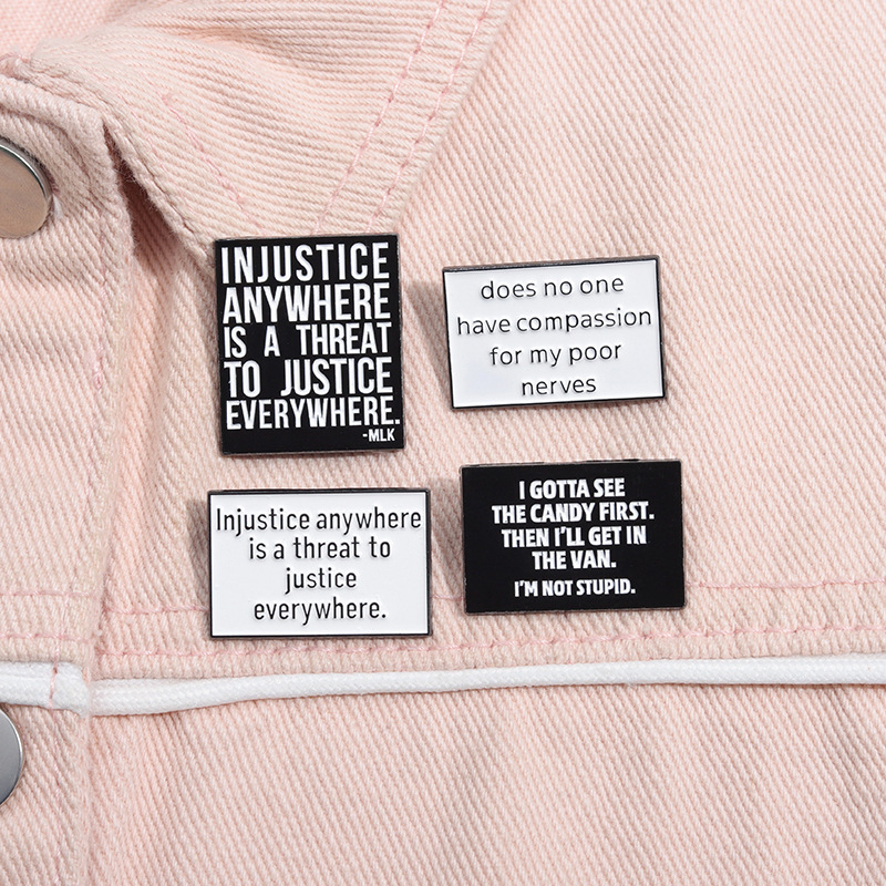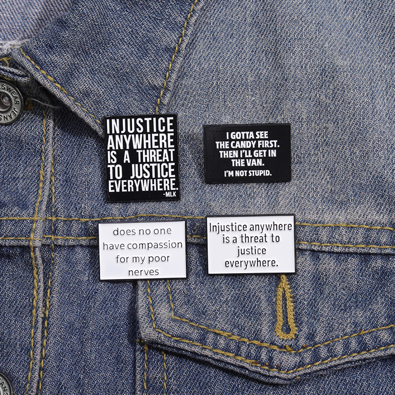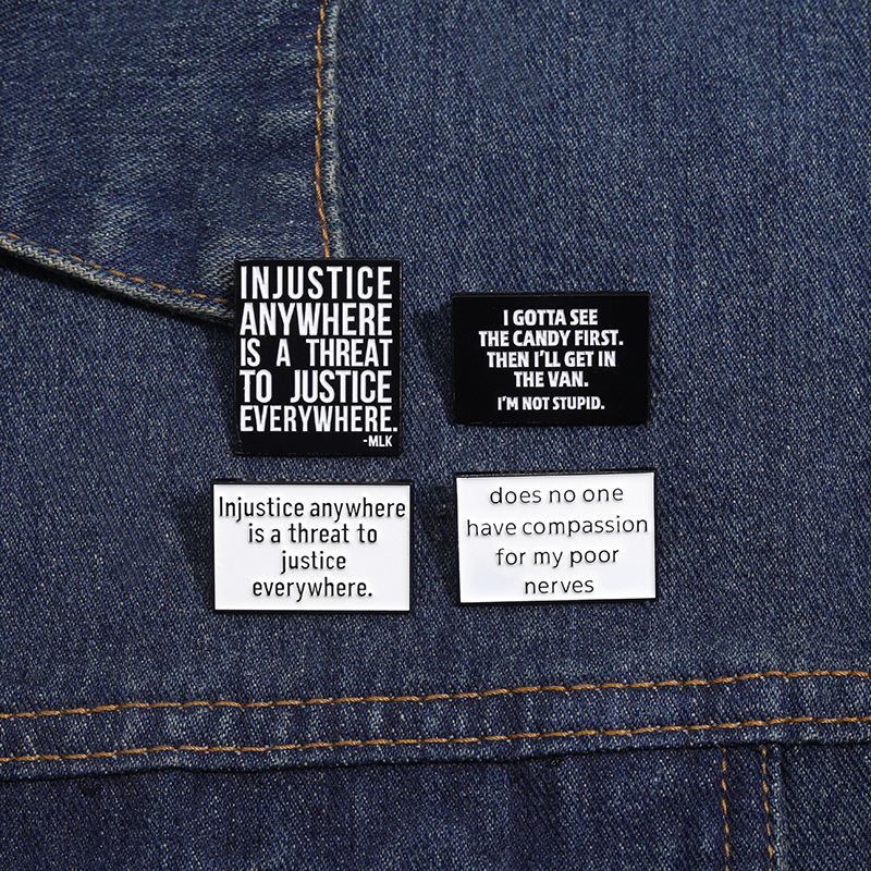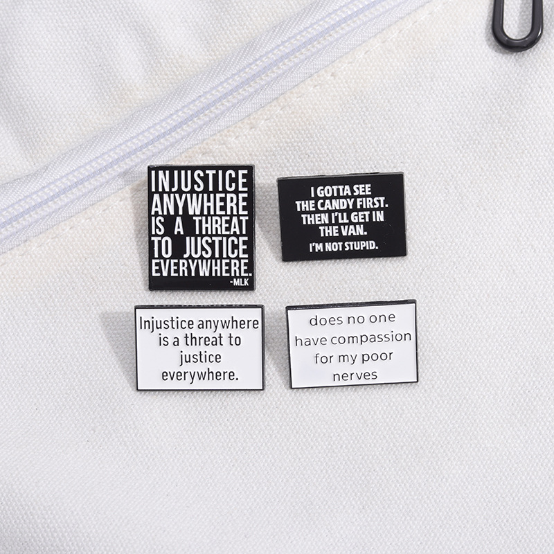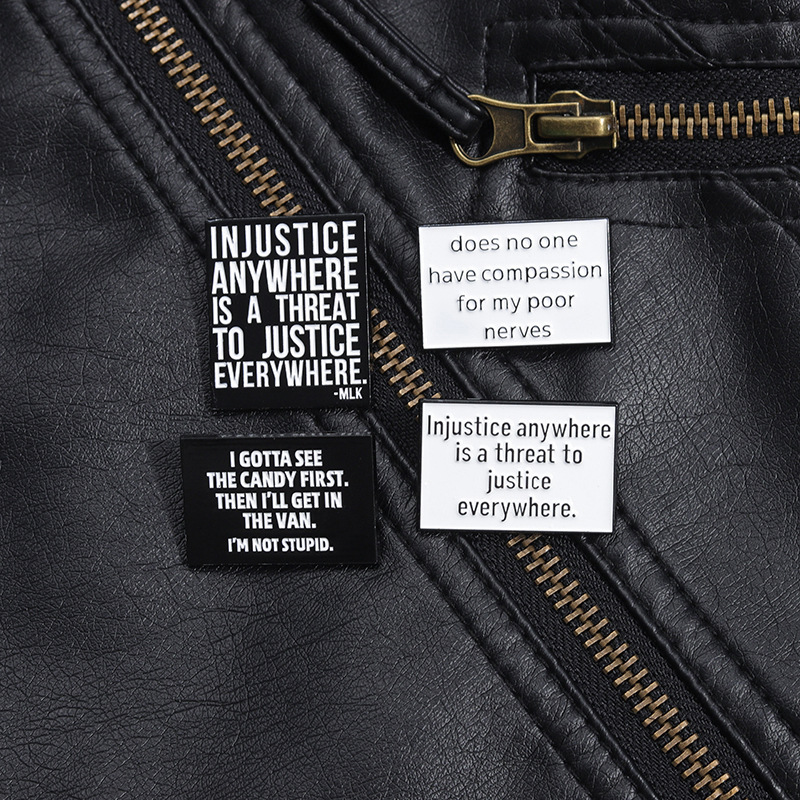 亚马逊个性新品热销 创意英文短句胸针 简约黑白字母配饰金属徽章 投诉