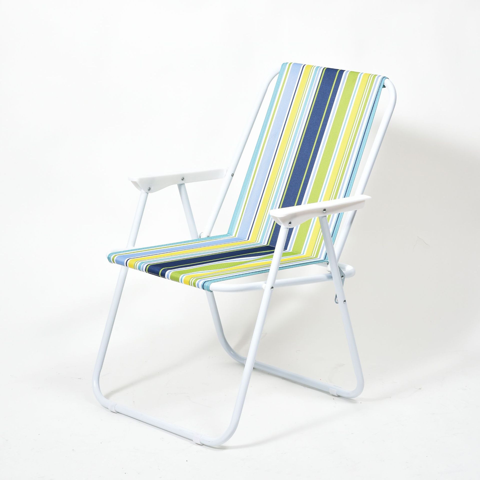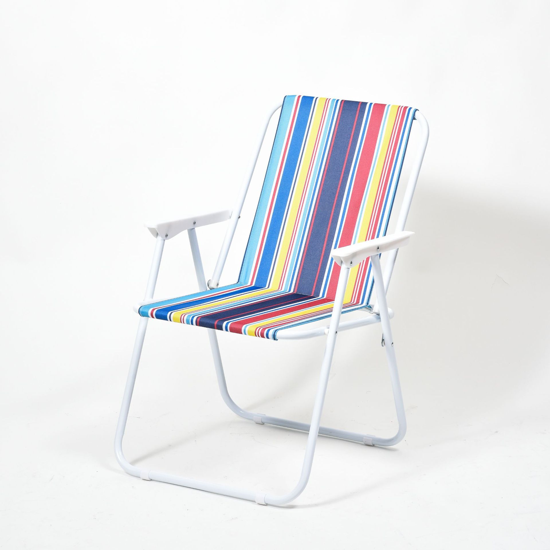 工厂定制户外折叠沙滩豪华扶手弹簧椅条纹椅休闲野营折叠羊脚椅子