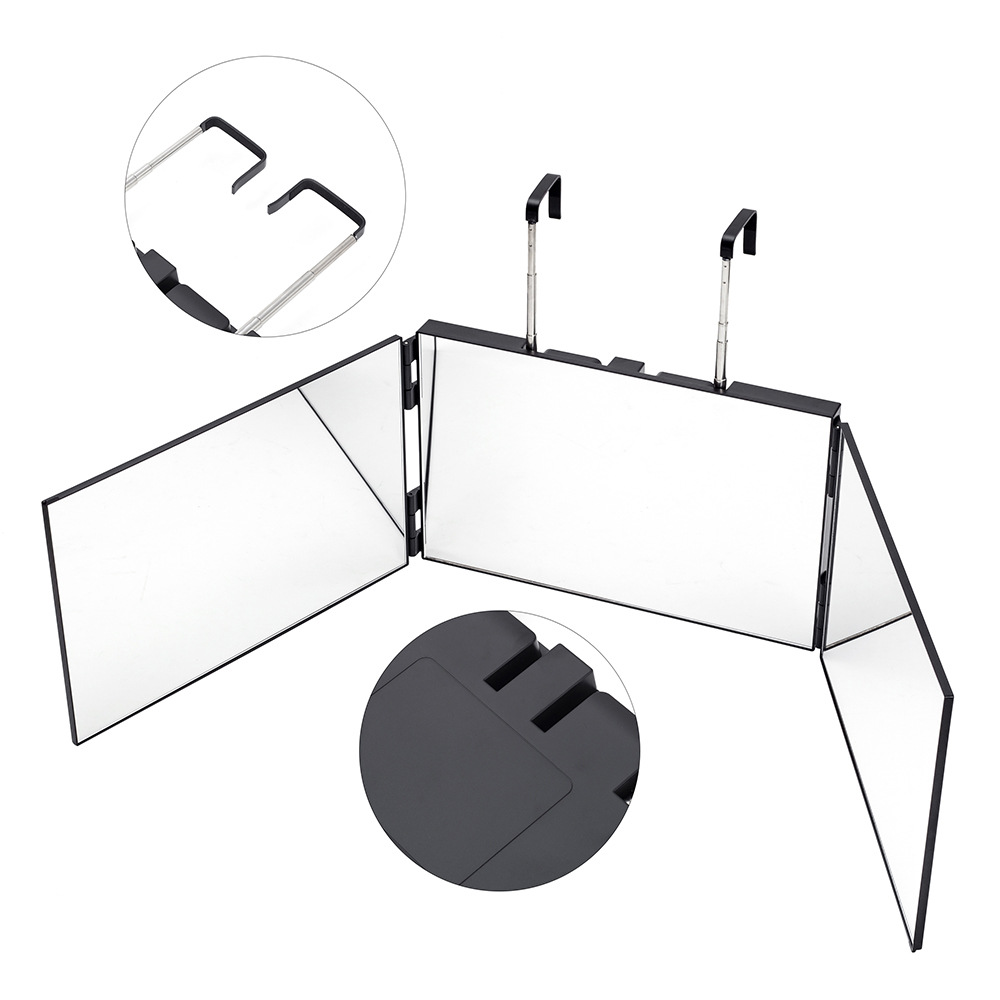 • 解放双手,可调节和便携 – 由于其坚固的可调节支架,您只需要一扇门将我们的三折镜放置在合适的高度。 可轻松放入行李箱中,即使在旅行中也能保持头发清爽!