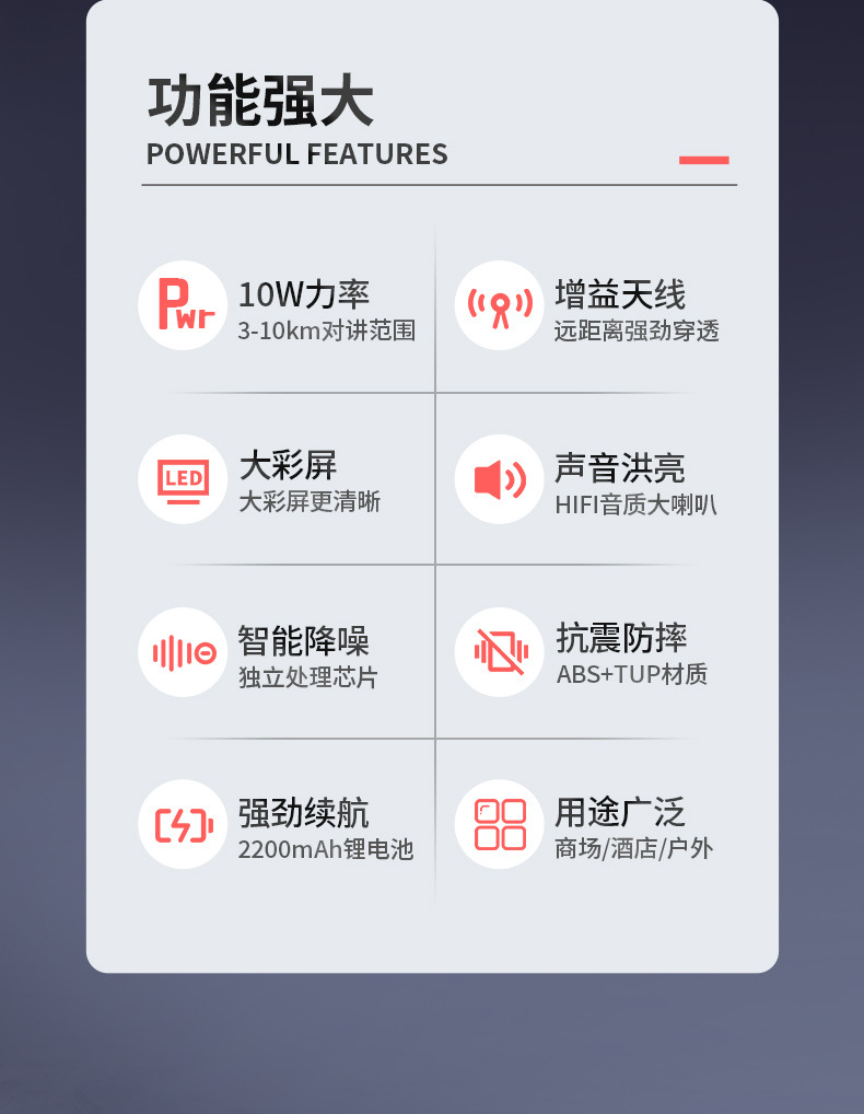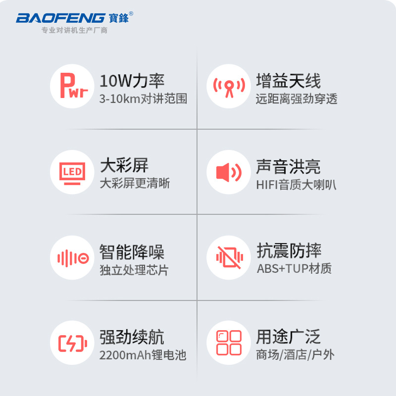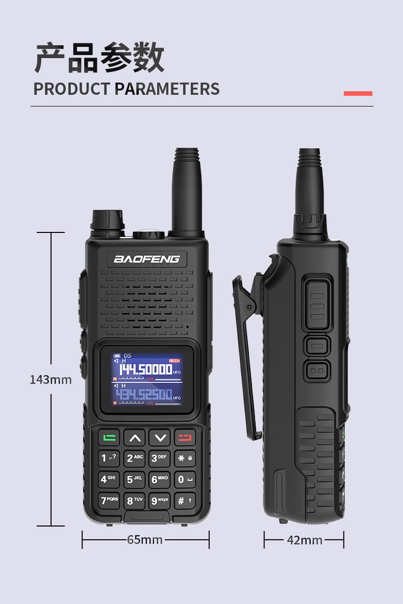 种类: 整机 货号: UV30L 品牌: 宝锋 频率范围: 136-174/400-520mhz(M 射频输出功率: 10W(W) 信道数: 999(个) 理论通讯距离: 5km-10km(km) 频率稳定度: ±2.5(ppm)(ppm) 电池类型: 锂电池 是否专利货源: 是