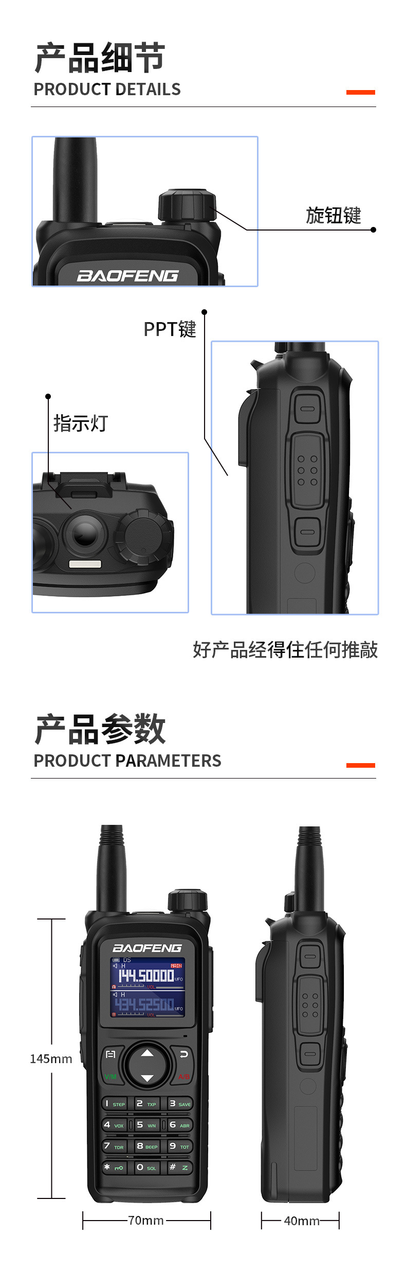 种类: 整机 货号: UV28L 品牌: 宝锋 频率范围: 136-174/400-520mhz(M 射频输出功率: 10W(W) 信道数: 999(个) 理论通讯距离: 5km-10km(km) 工作电压: 7.4V(V) 频率稳定度: ±2.5(ppm)(ppm) 电池类型: 锂电池