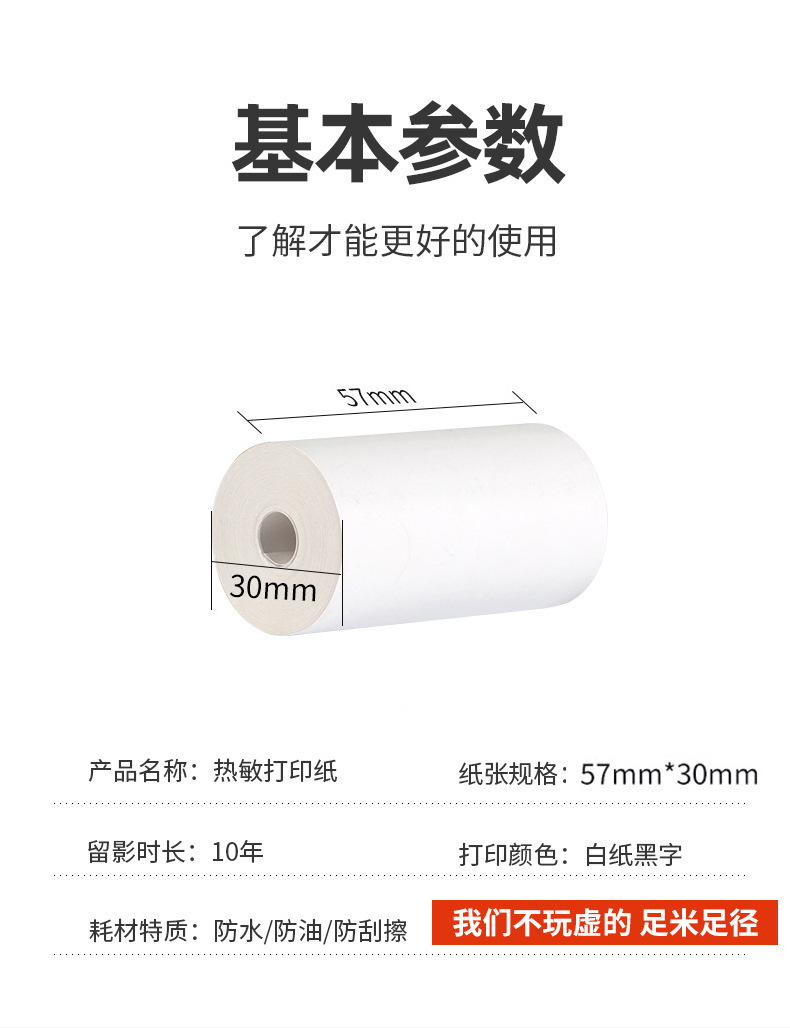 说明:包含5卷57*30打印纸,