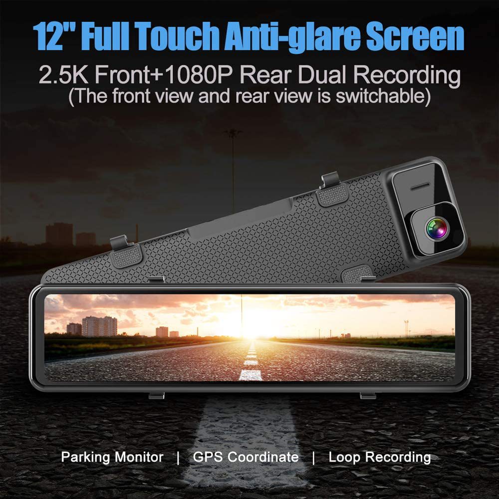 新款12寸行车记录仪夜视高清双镜头 海思2K流媒体后视镜跨境传供 倒车影像一体机 声控行车记录仪带电子狗