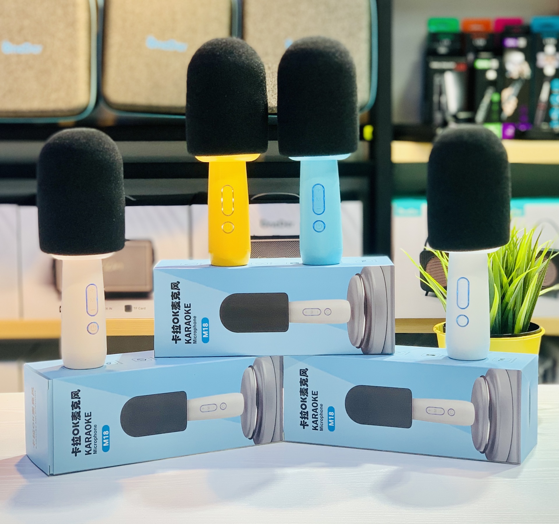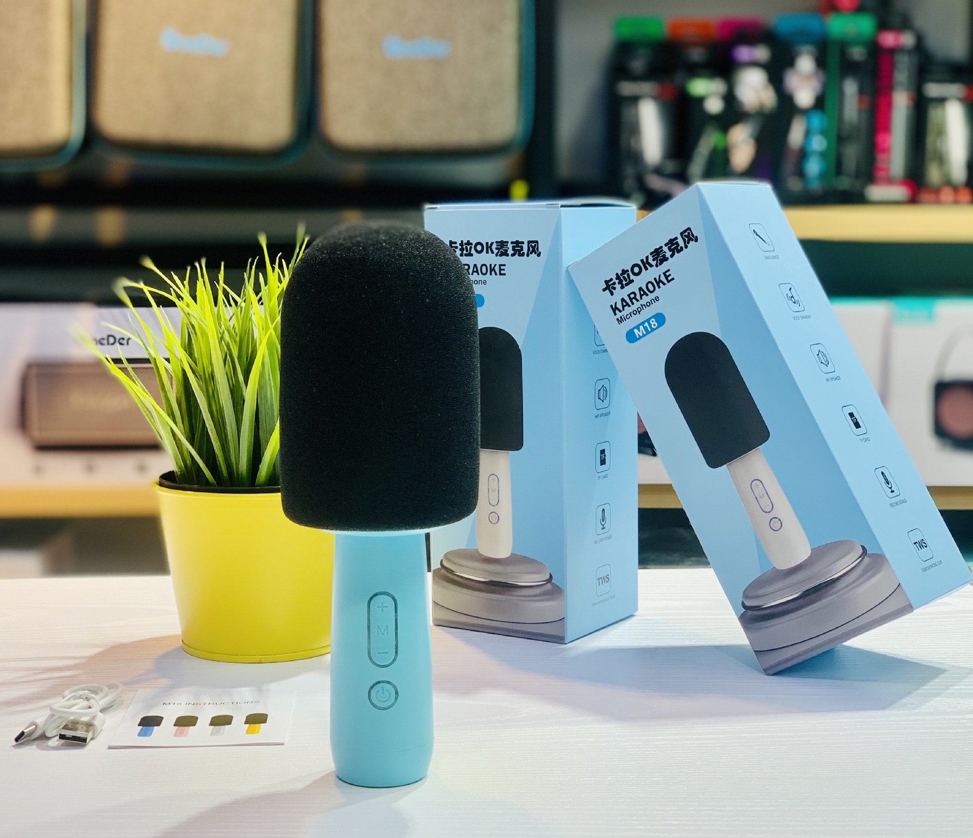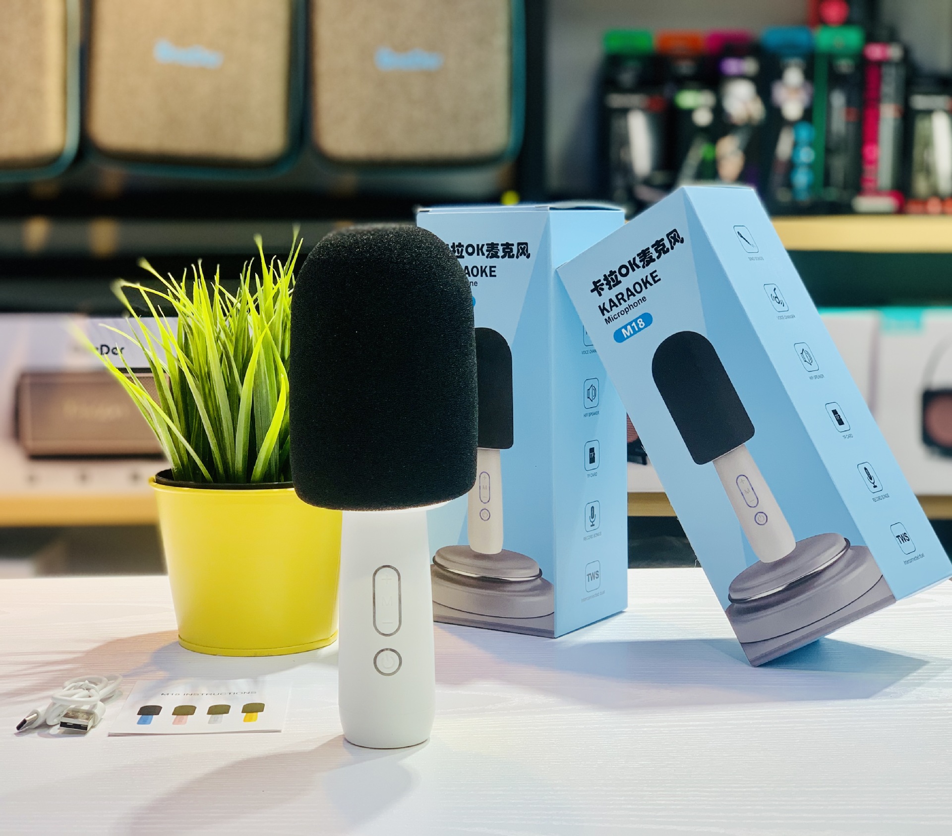 新款K歌宝麦克风蓝牙音响迷你家用无线简约便携对联蓝牙音箱M18