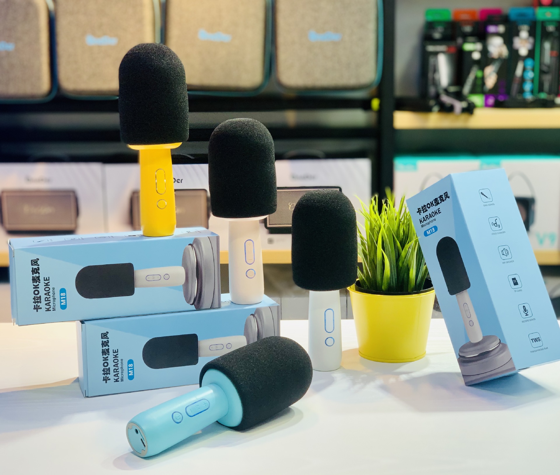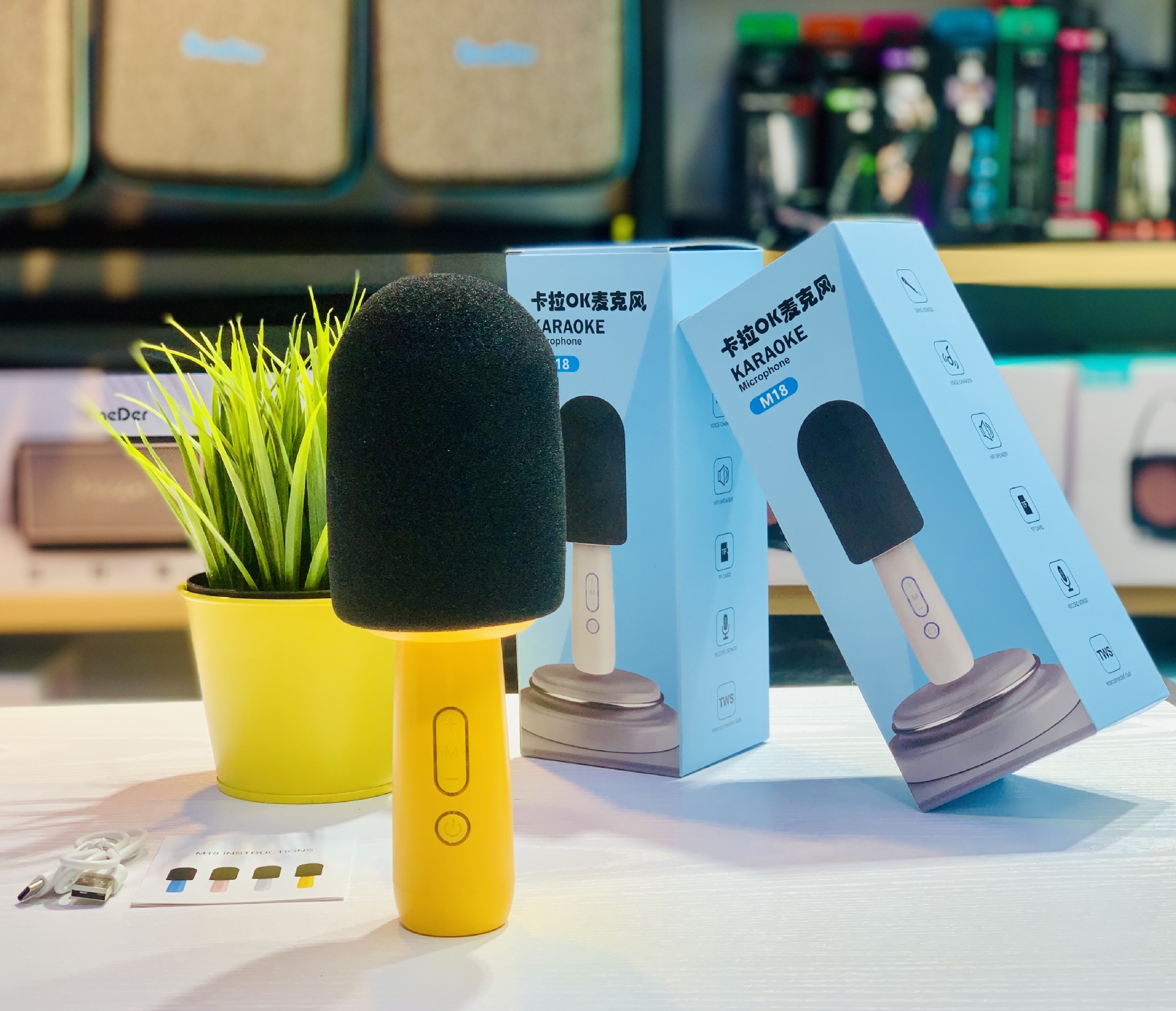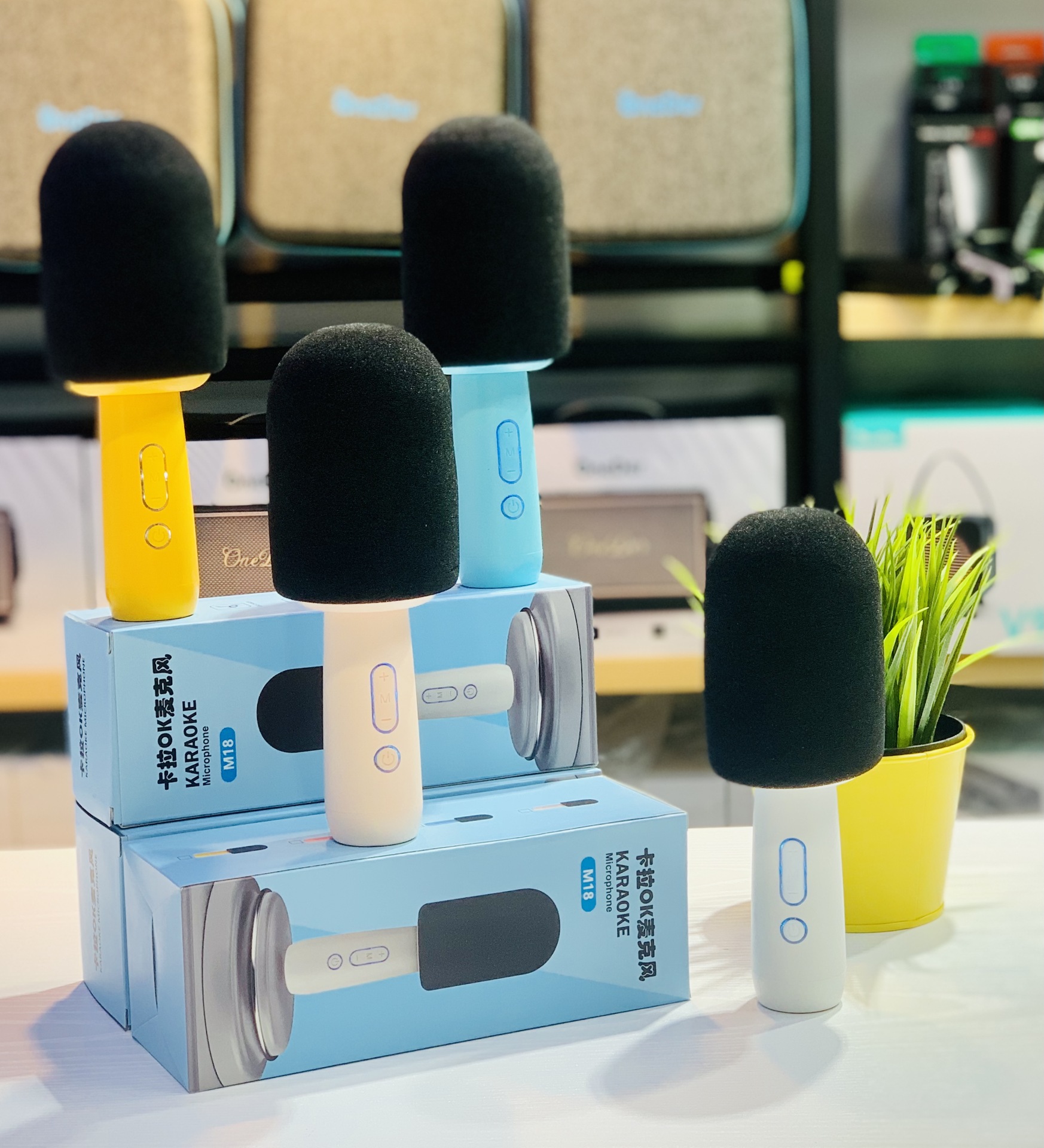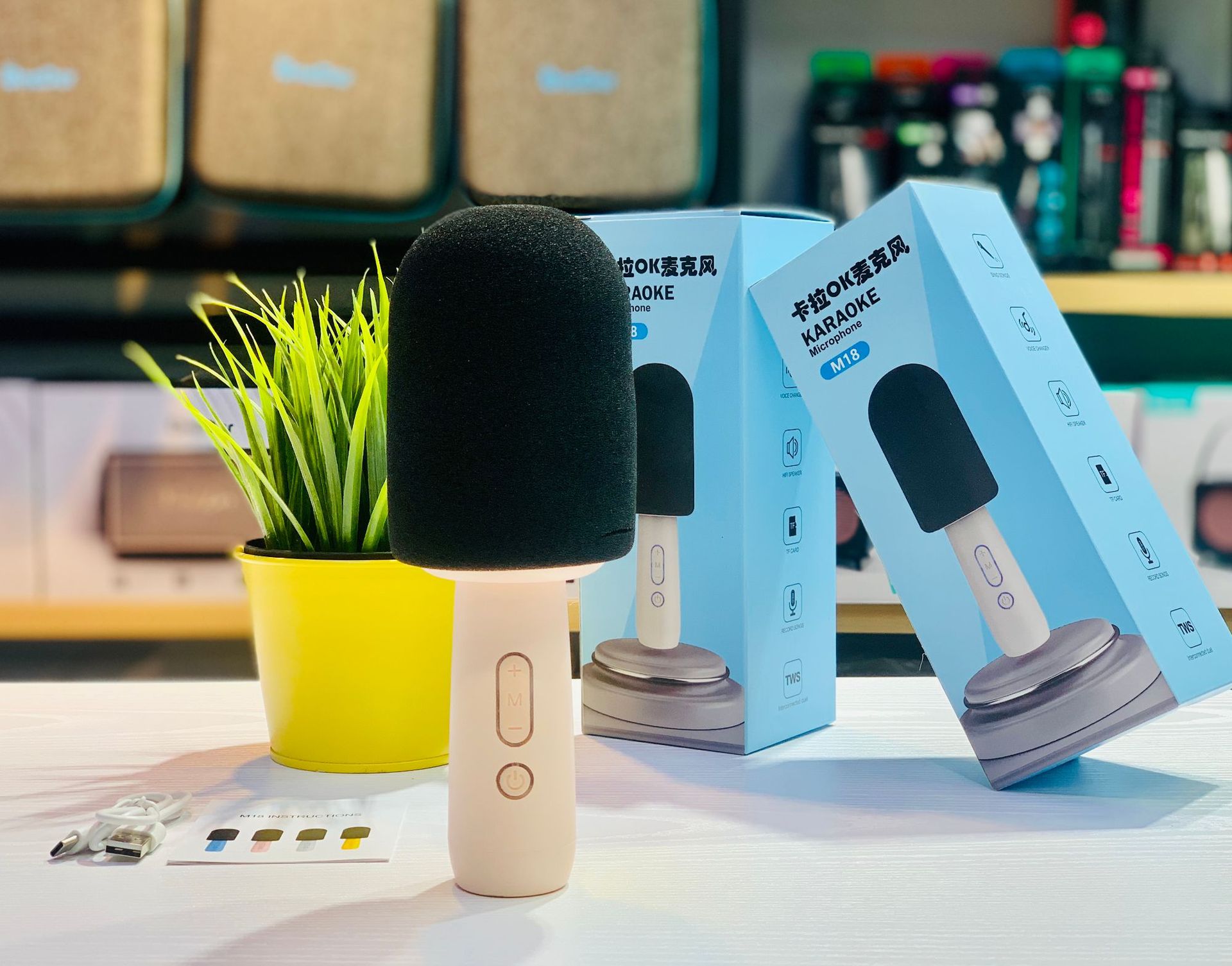 新款K歌宝麦克风蓝牙音响迷你家用无线简约便携对联蓝牙音箱M18