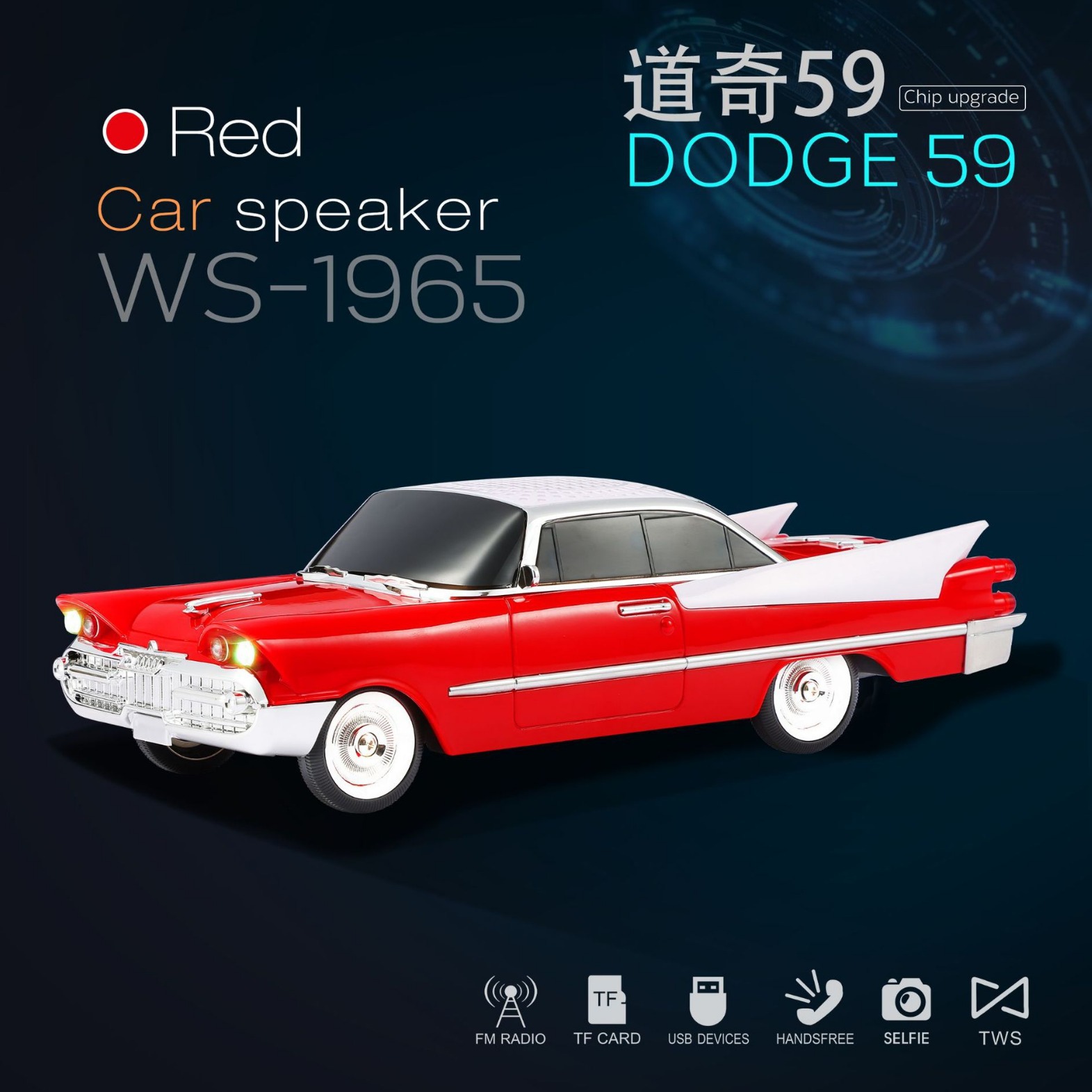 *功能(FUTION):BT,USB,TF,FM,自拍,TWS,LED显示