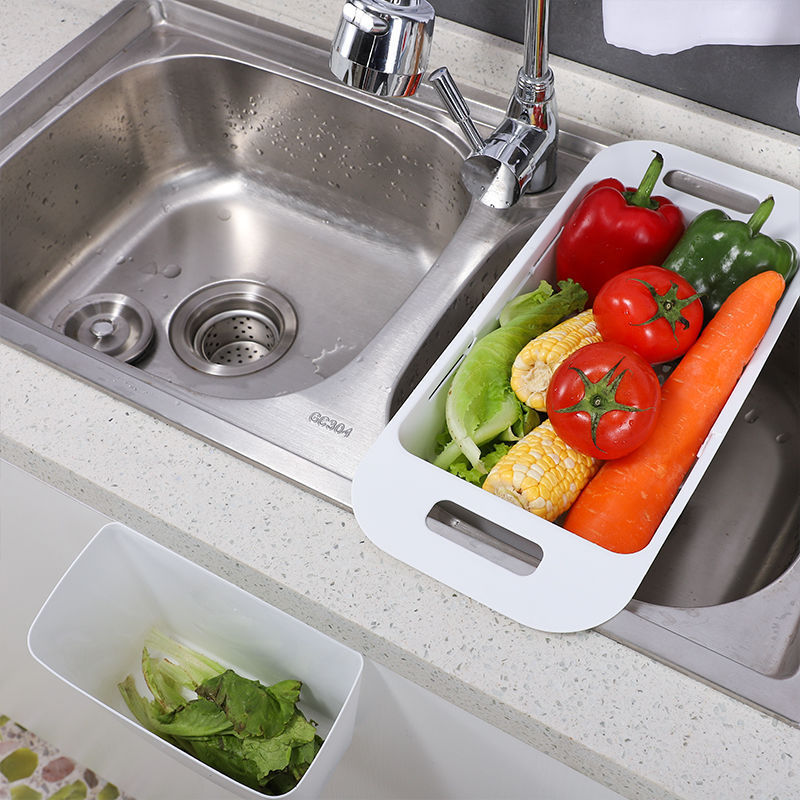 可伸缩水槽沥水篮 厨房碗碟置物架水果蔬菜清洗沥水架镂空收纳篮