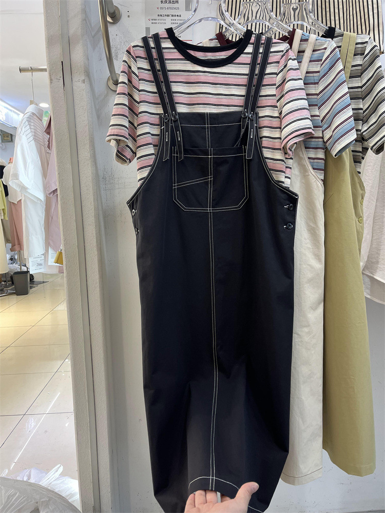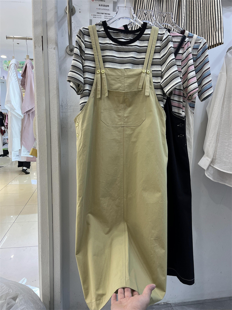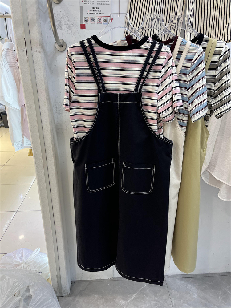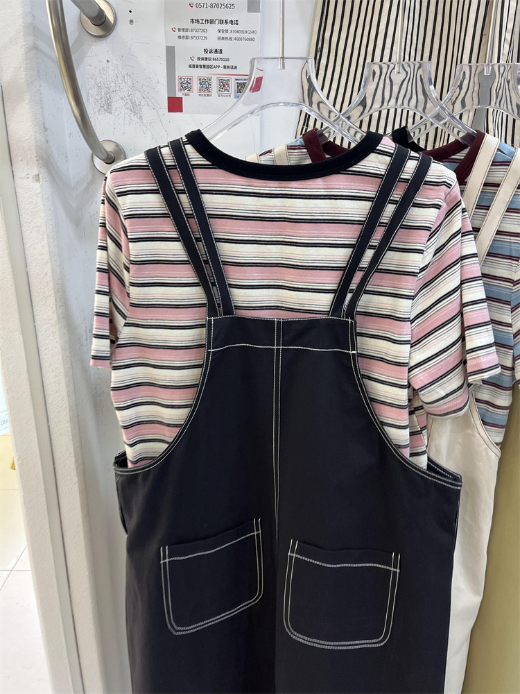 2024夏季新款条纹百搭圆领短袖上衣T 恤纯色口袋吊带裙时尚套装女 English | 投诉