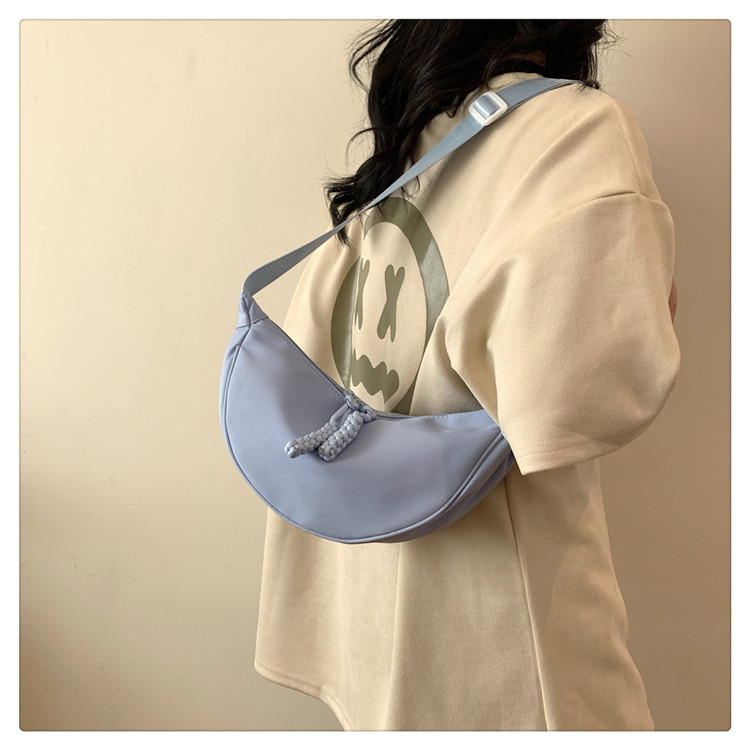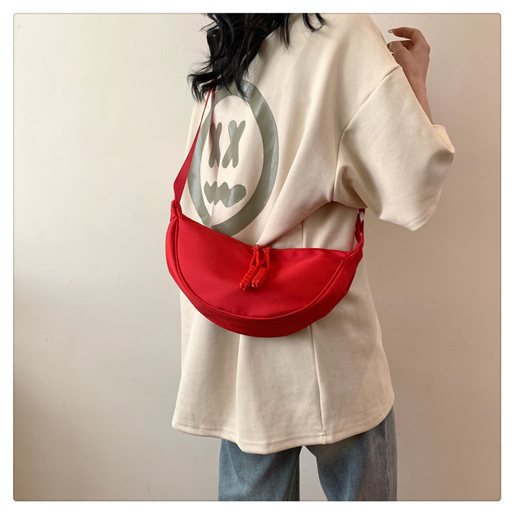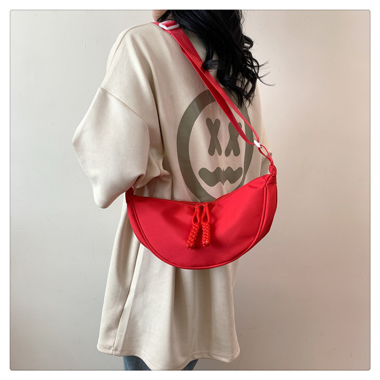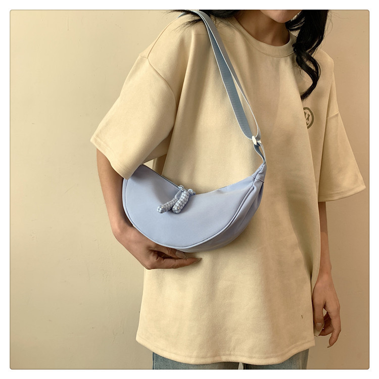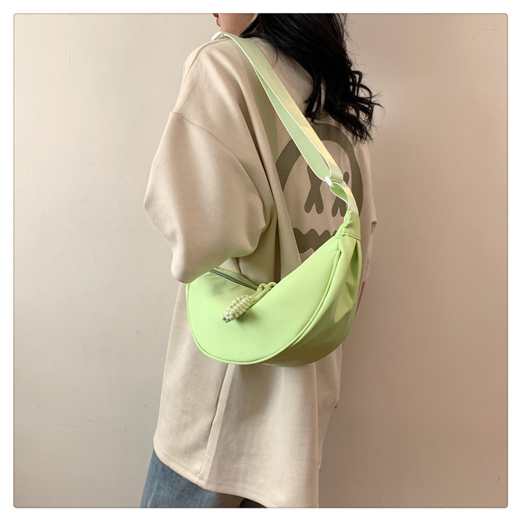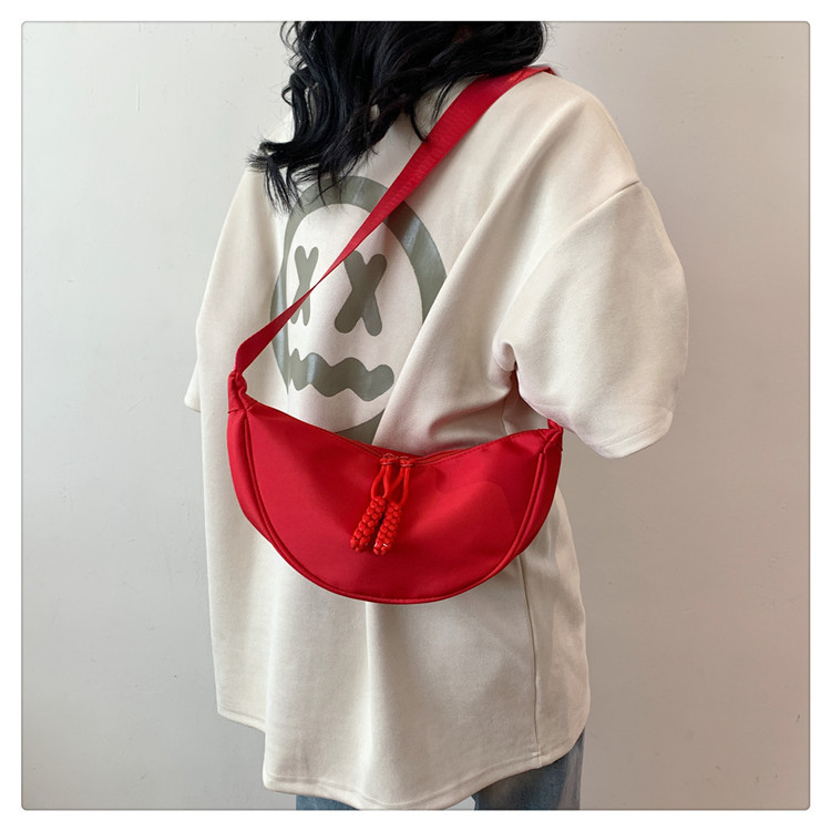 质地:尼龙布闭合方式:拉链流行元素:车缝线款式:单肩包流行款式名称:饺子包尺码:均码
