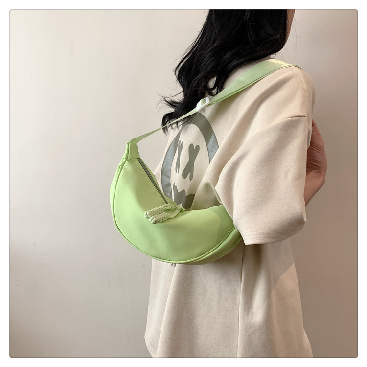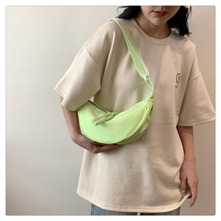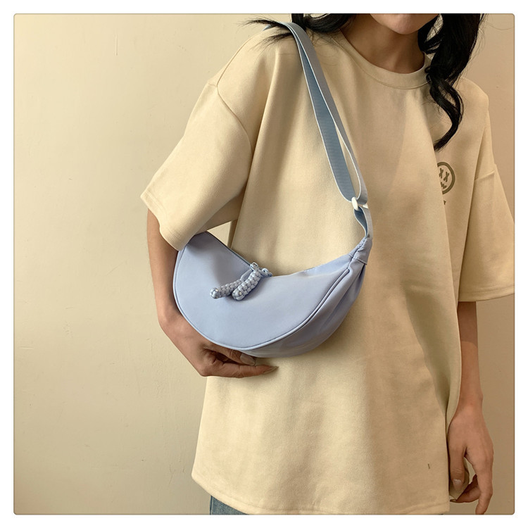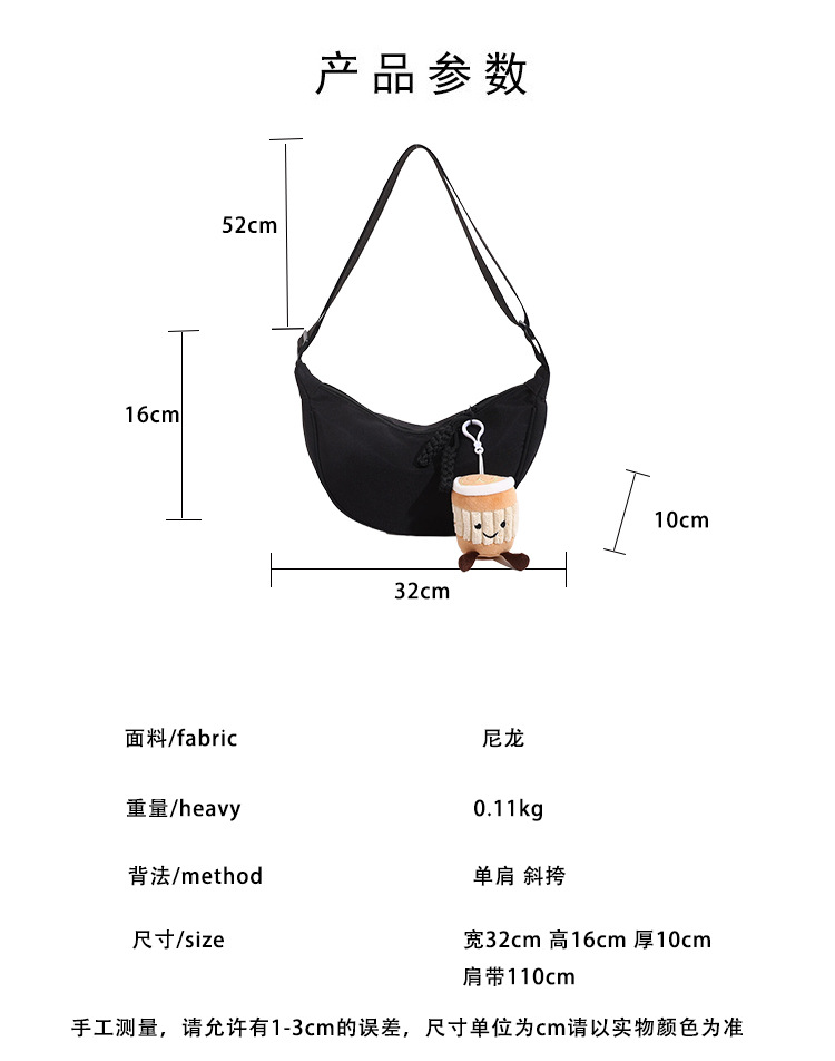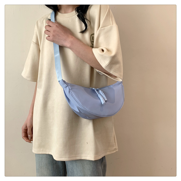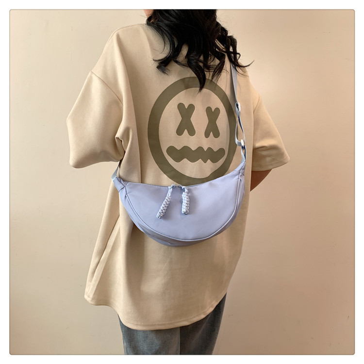 质地:尼龙布闭合方式:拉链流行元素:车缝线款式:单肩包流行款式名称:饺子包尺码:均码