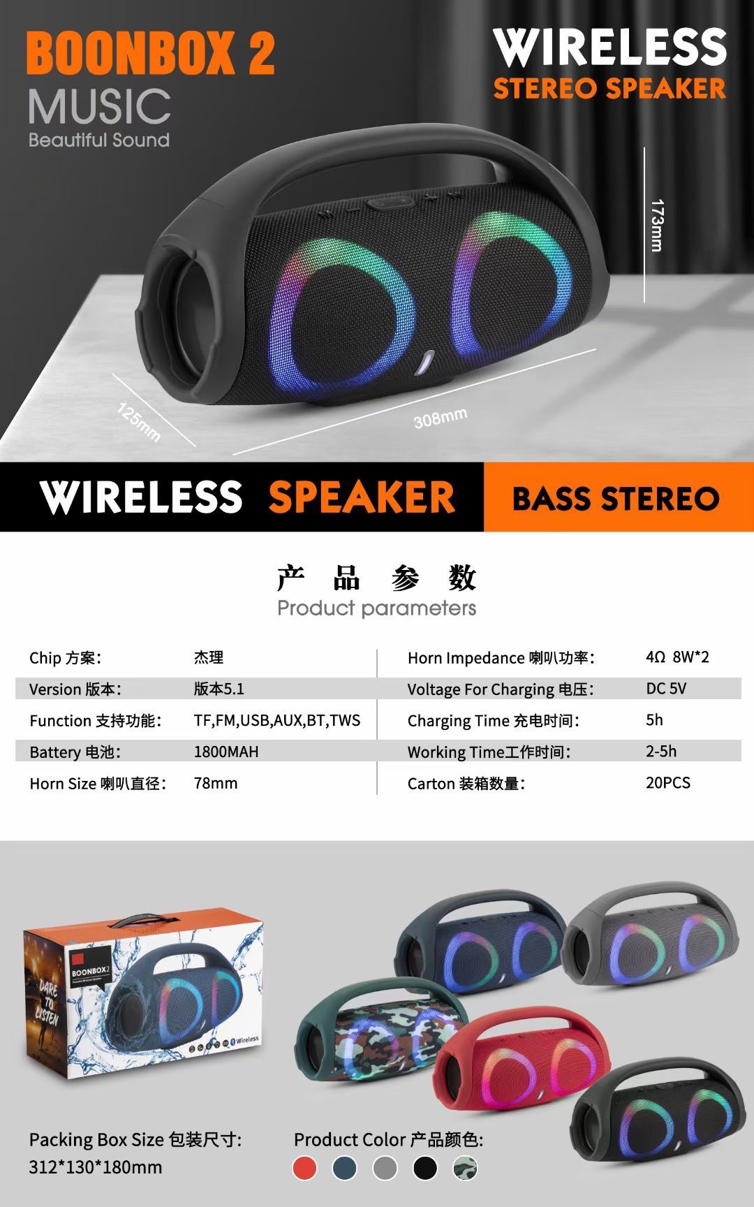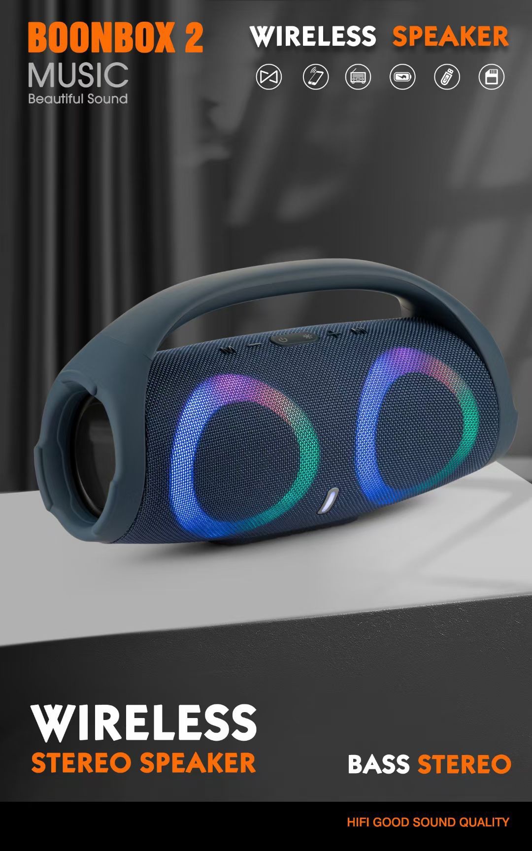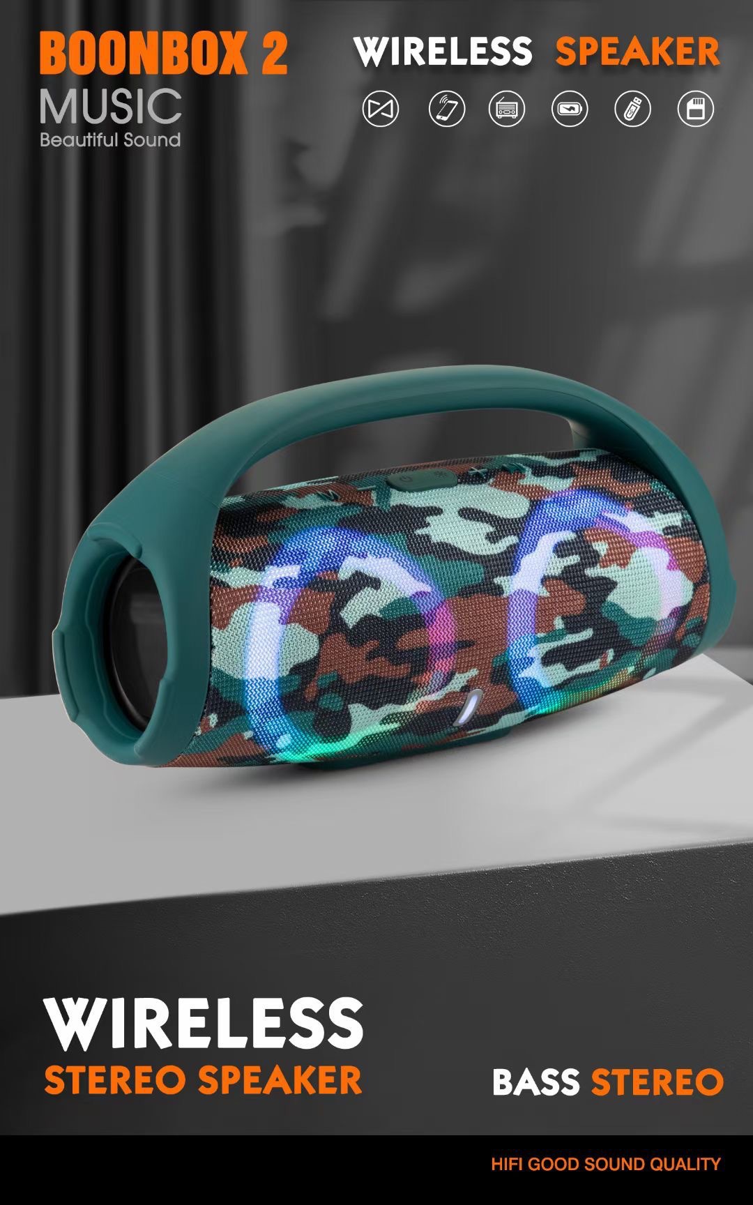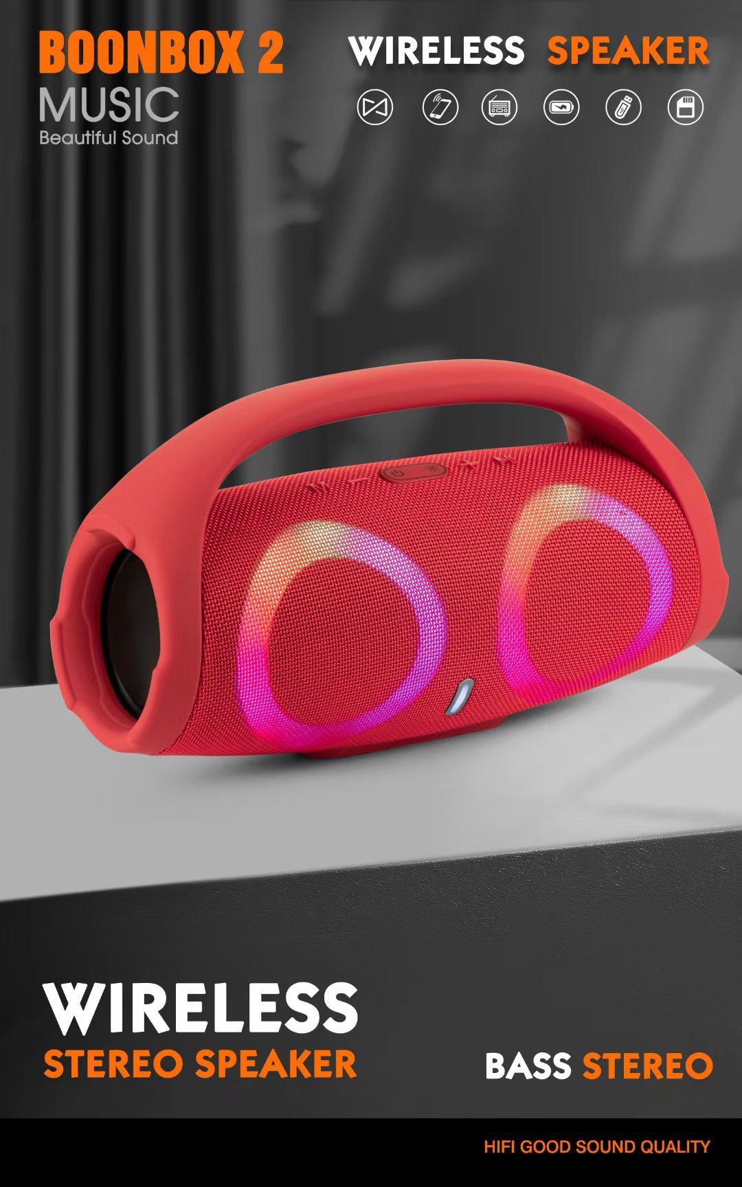 跨境大战神二代手提蓝牙音箱 BOOMSBOX2炫彩大音量重低音插卡音响跨境大战神二代手提蓝牙音箱 BOOMSBOX2炫彩大音量重低音插卡音响