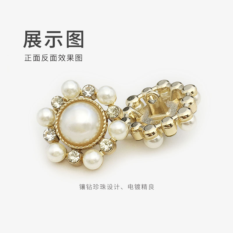 女上衣大衣毛衣百搭衣服装饰镶钻钮扣配件金属珍珠纽扣扣子花形扣 English | 投诉