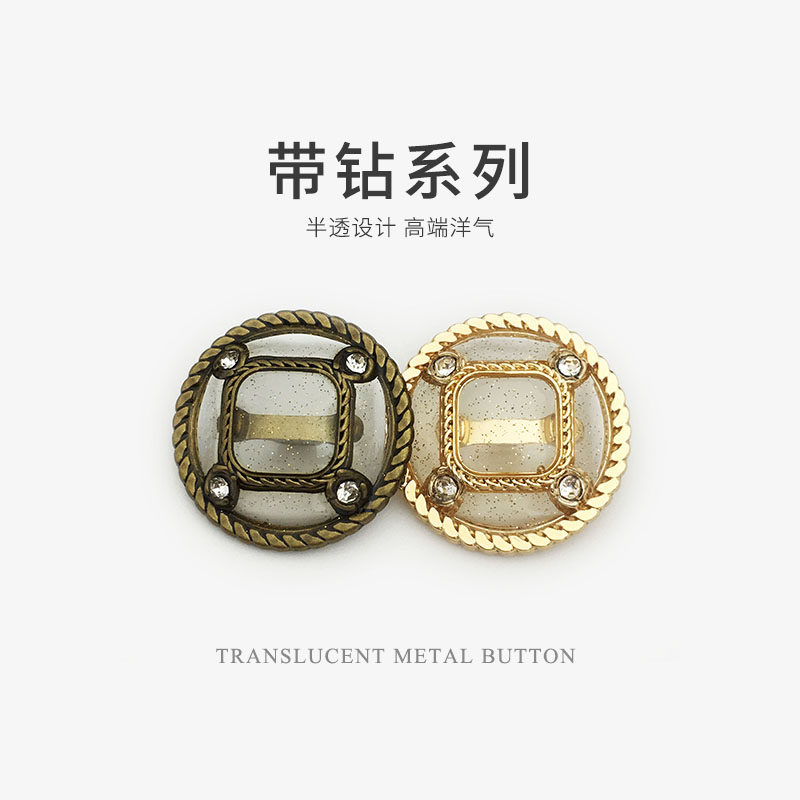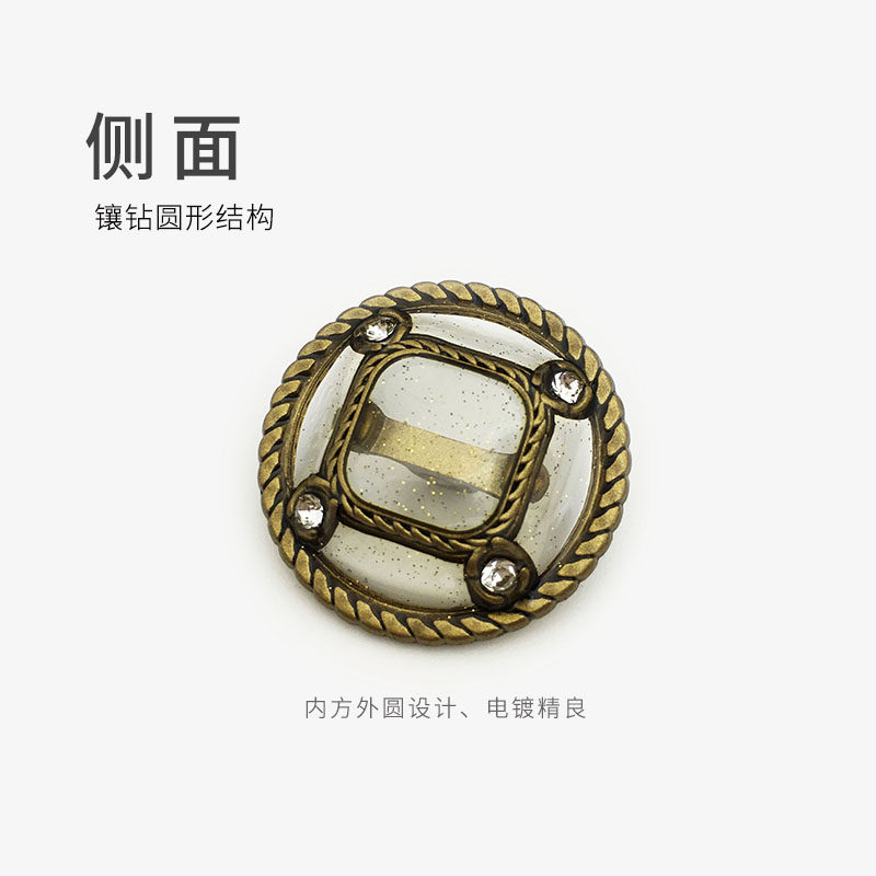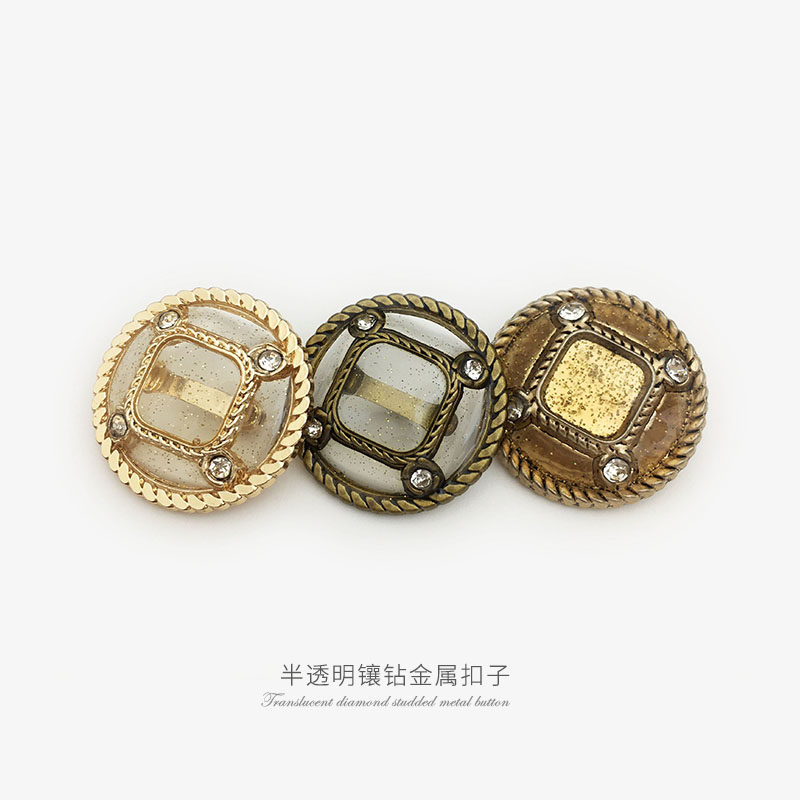 金色半透明毛衣纽扣西装外套金属镶钻高脚扣子圆形皮草衣服配件 English | 投诉