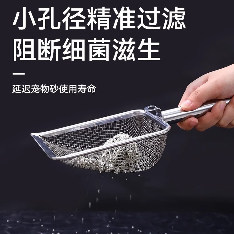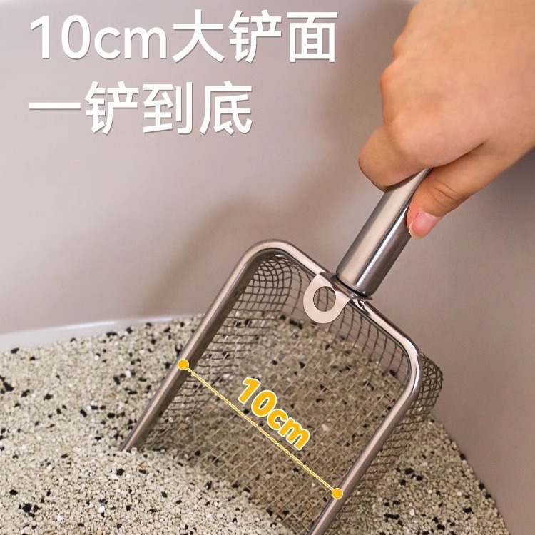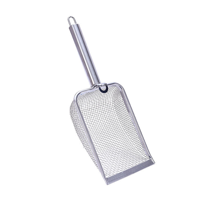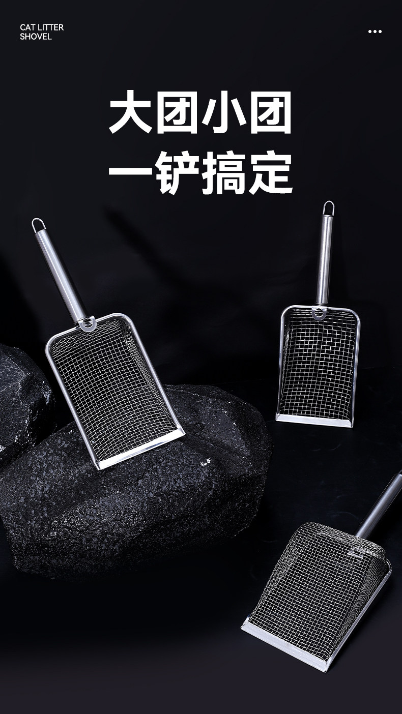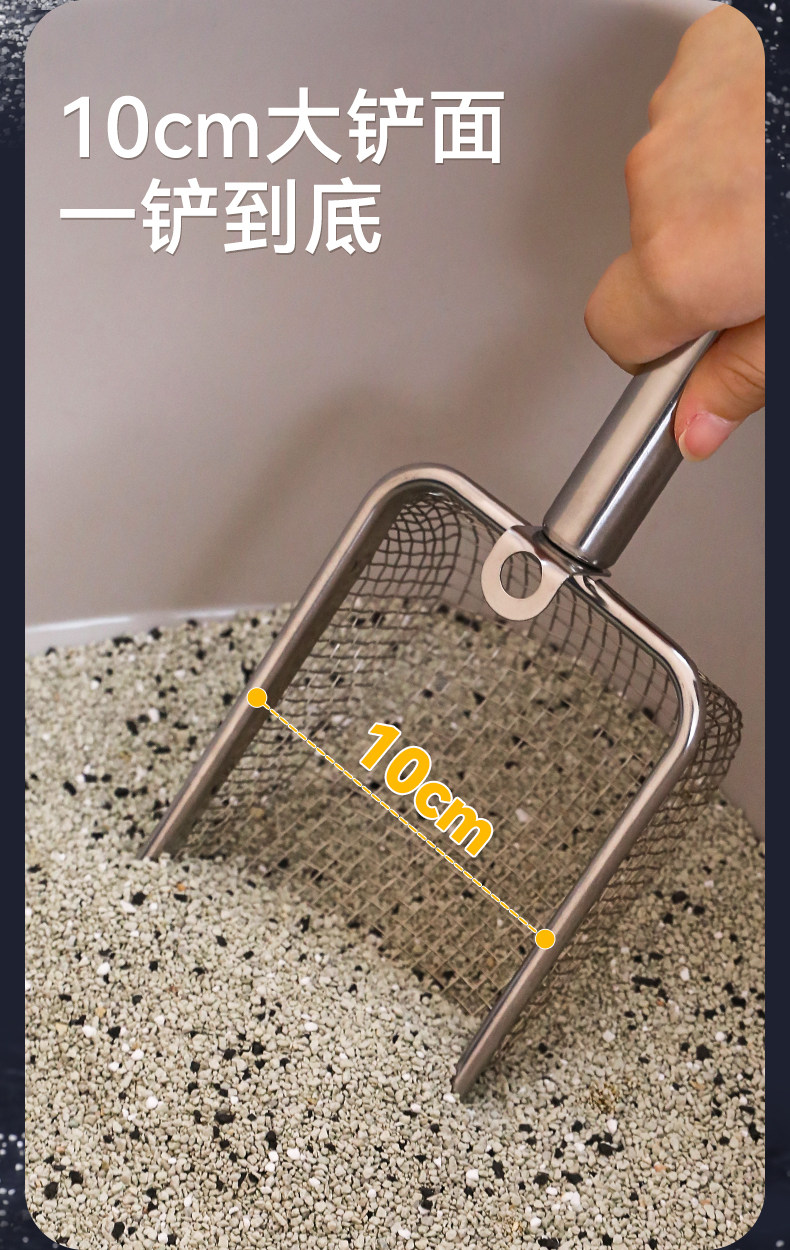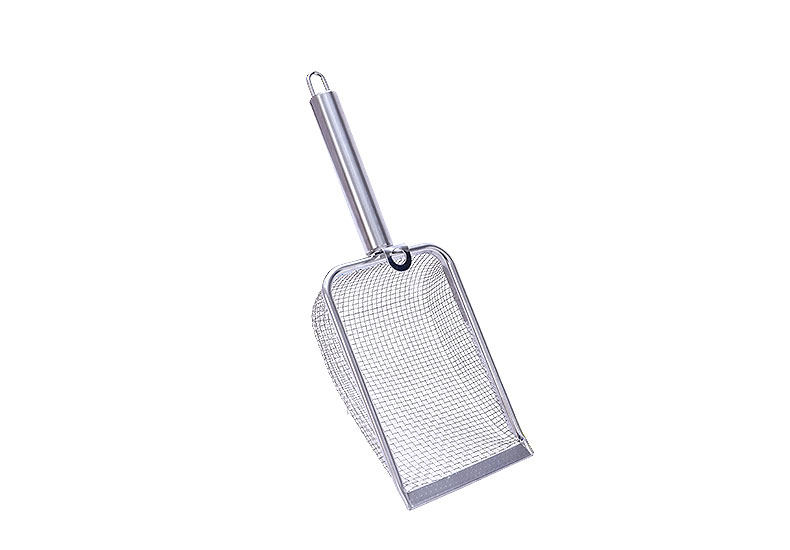 【品名】:细网猫砂铲不锈钢柄(2.8/3.5/4.5)带钩/hoopet细网木柄圆孔挂扣猫砂铲(2.8/3.5/4.5)