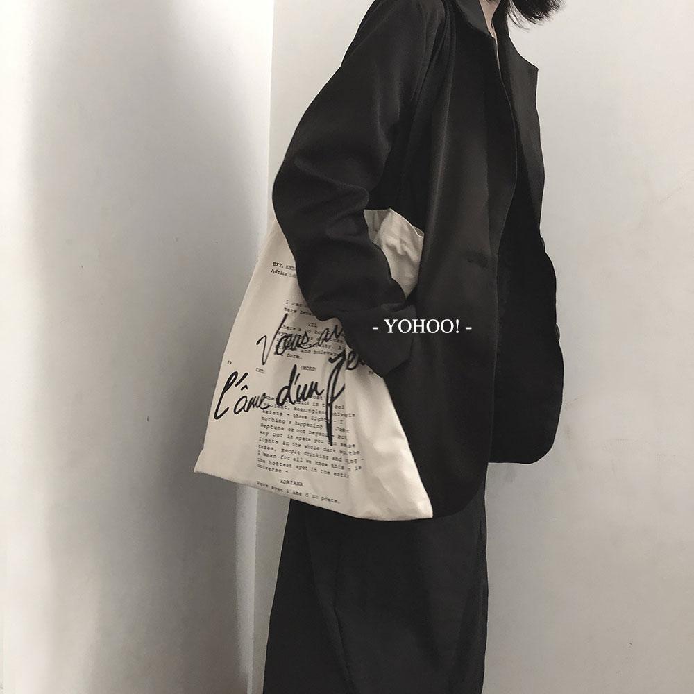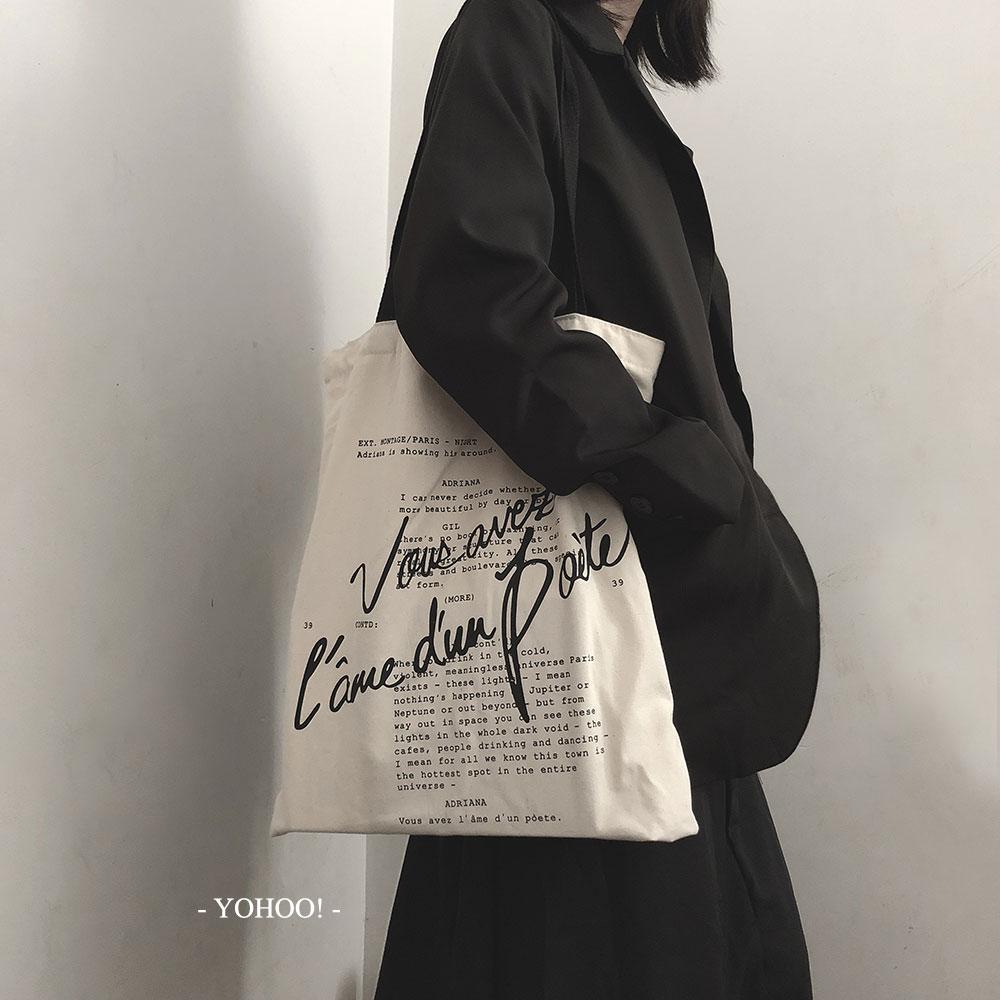 小众复古手写电影台词ins韩风chic百搭大号拉链单肩帆布包购物袋 English | 投诉