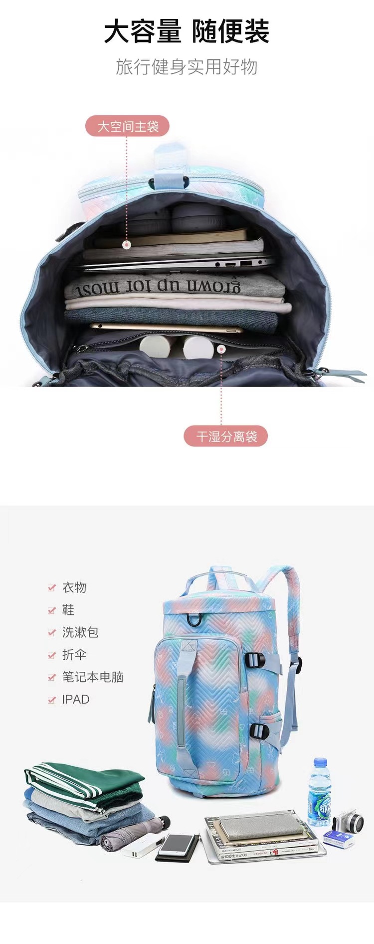 2024新款运动瑜伽健身包男女短途手提旅行包大容量高颜值行李包潮 English | 投诉