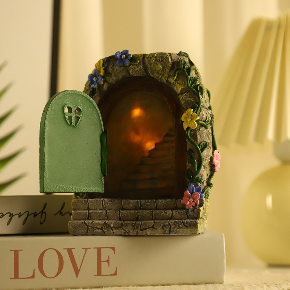 跨境小夜灯 新款花园庭院装饰摆件 环保树脂田园仿真石门创意礼物