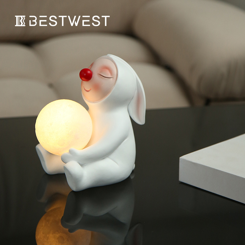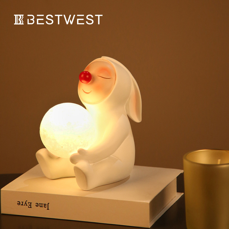 Best west 创意可爱月亮小夜灯摆件礼物ins风装饰品家居树脂软装
