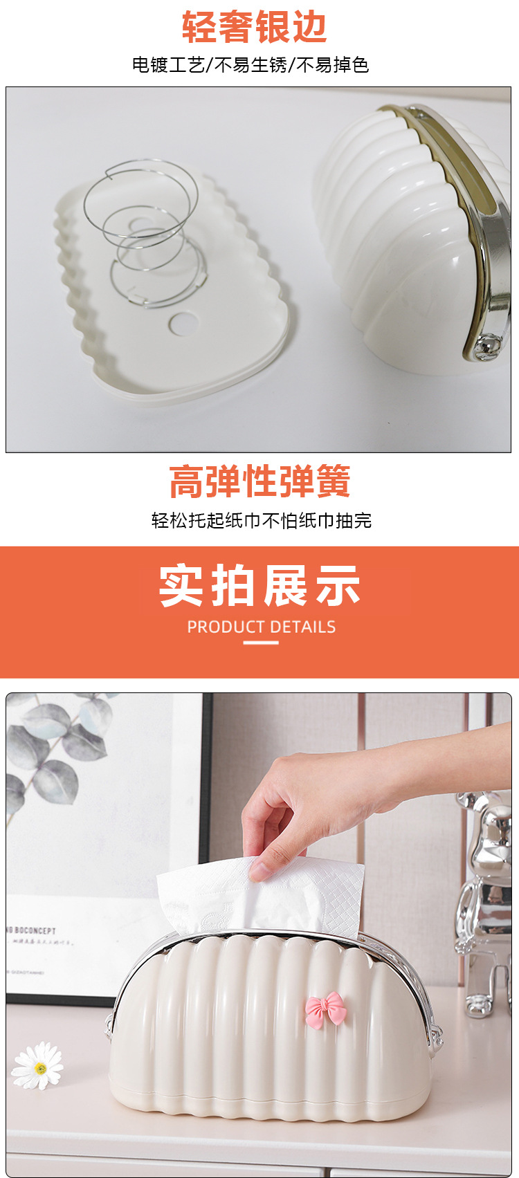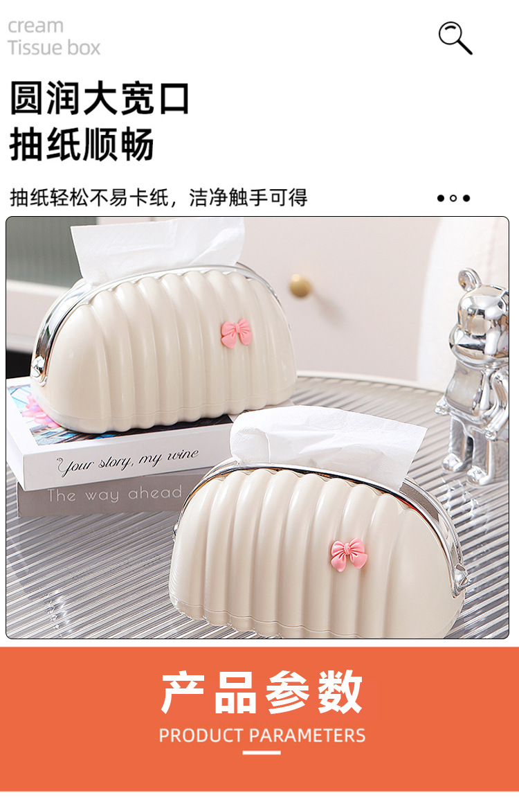奶油风蝴蝶挂件轻奢贝壳弹簧纸巾盒宿舍客厅茶几高级感桌面抽纸盒 投诉