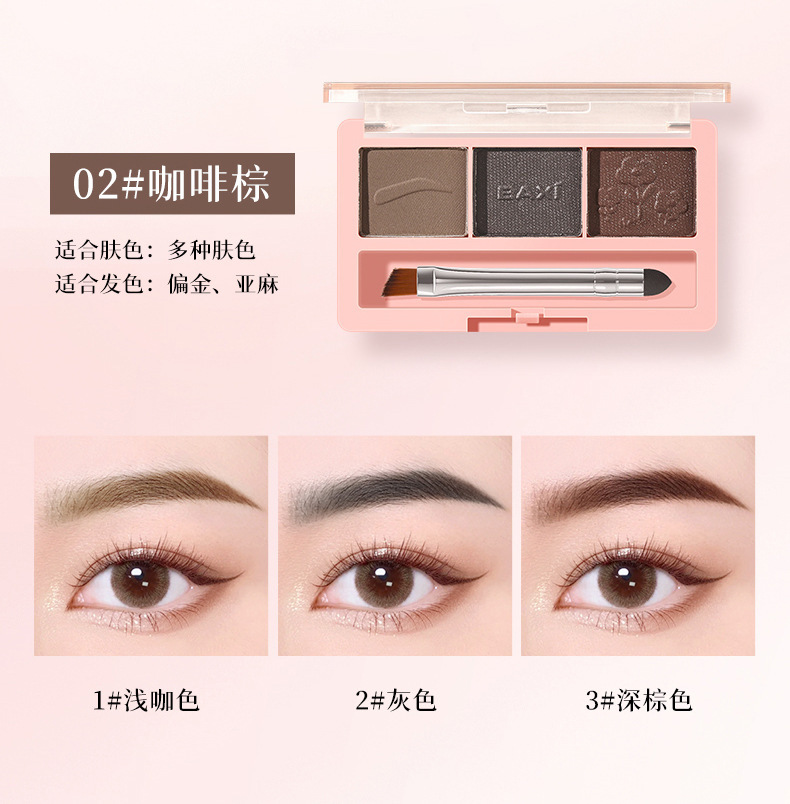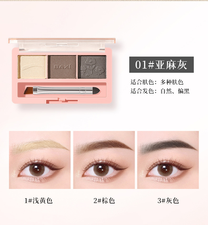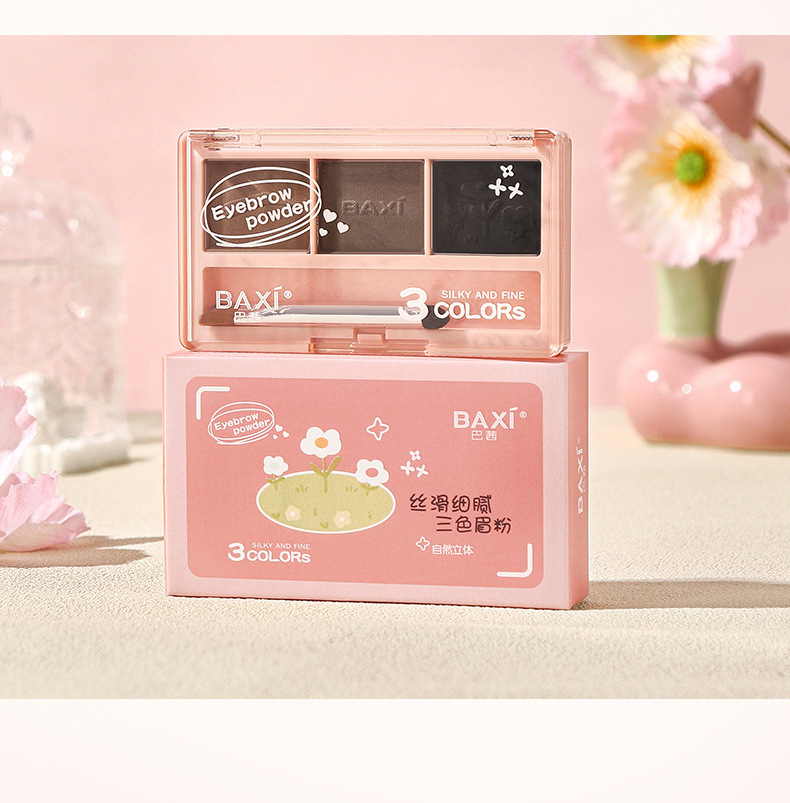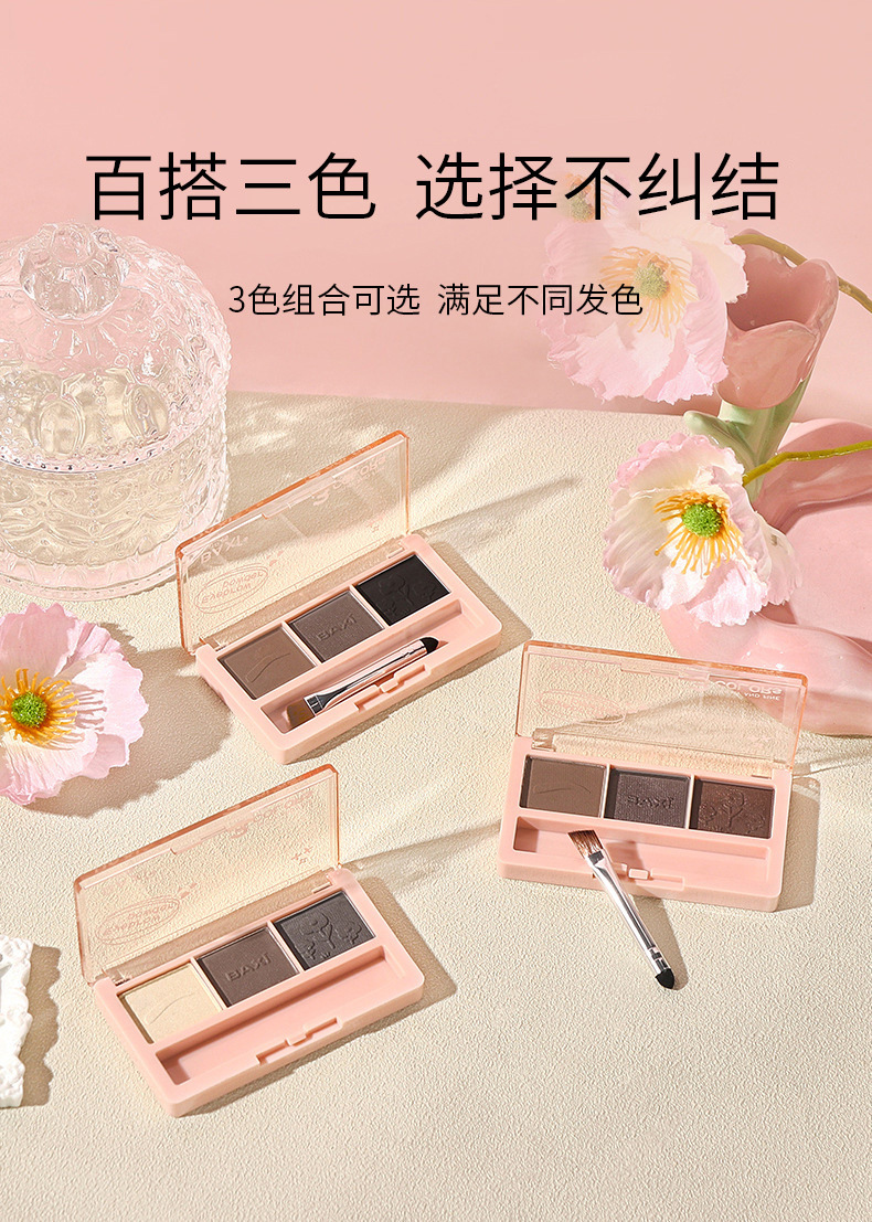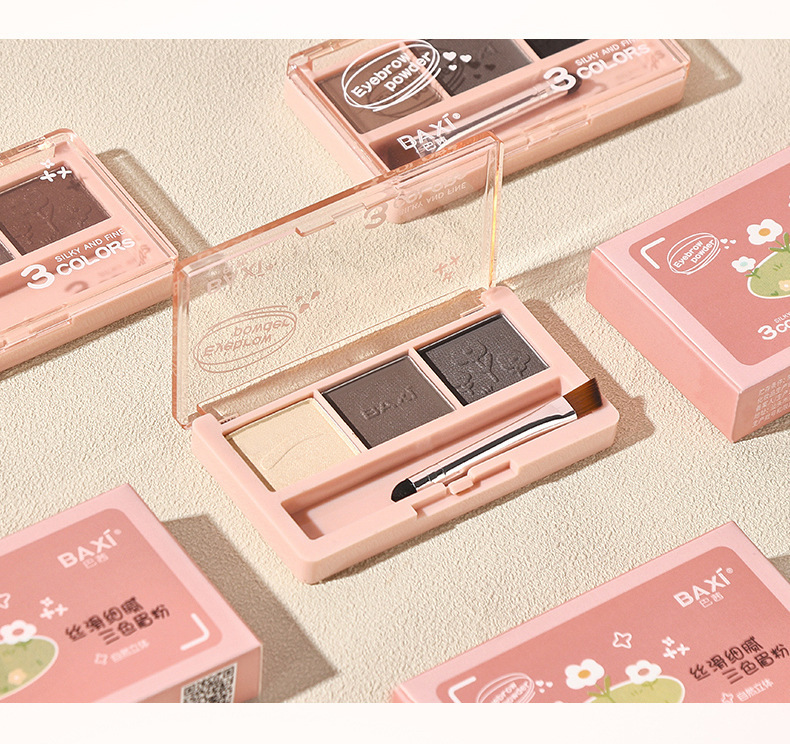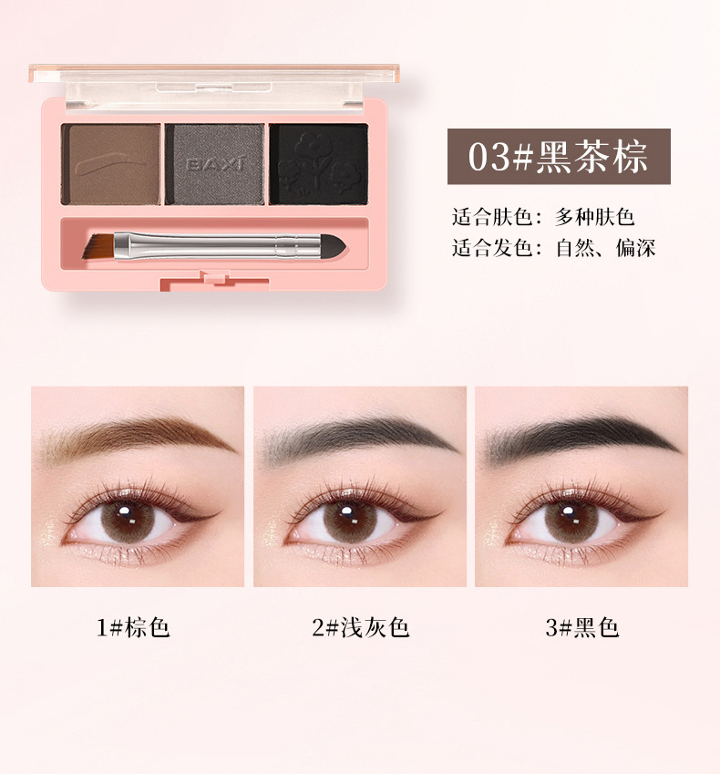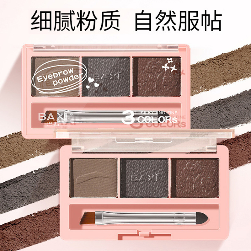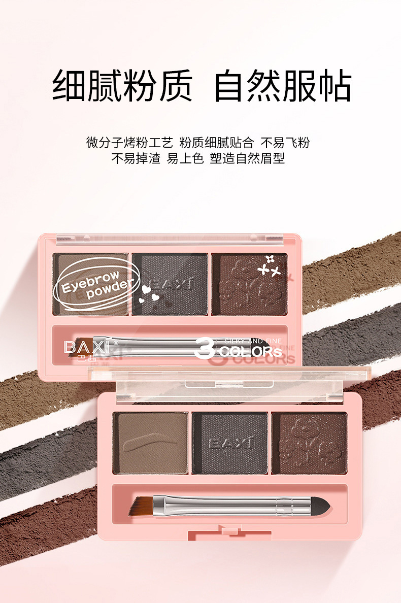 BAXI三色眉粉自然立体易上色耐水汗不易脱色野生眉刷笔膏初学者专供出口 投诉
