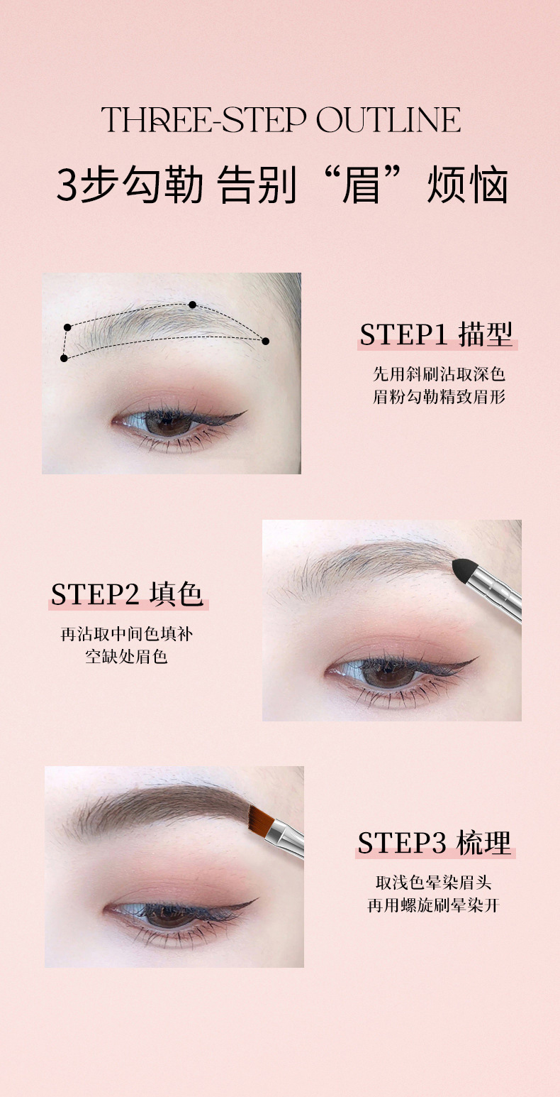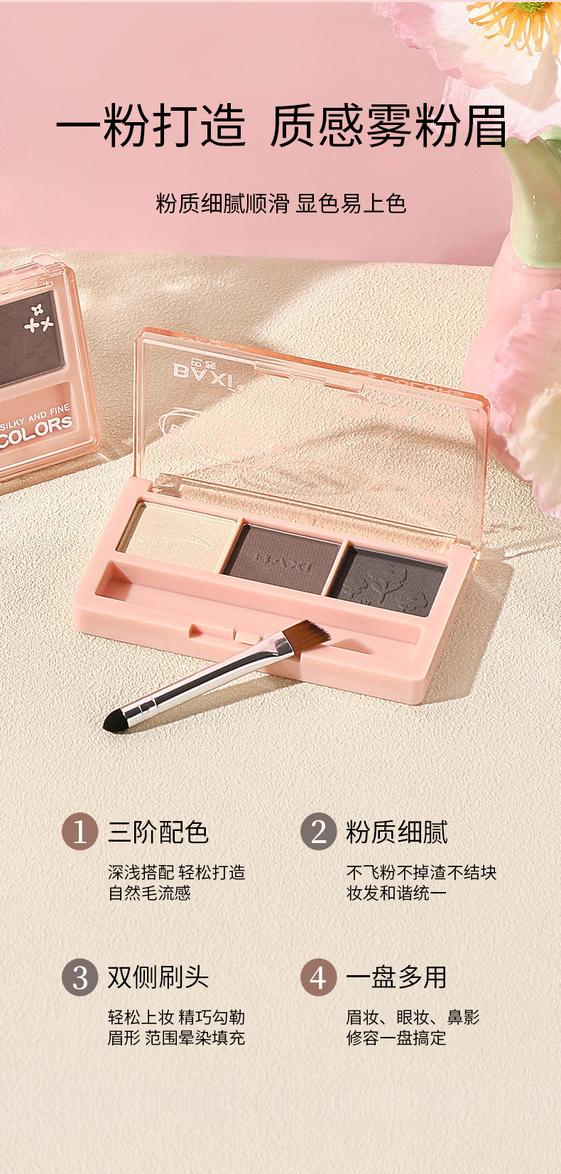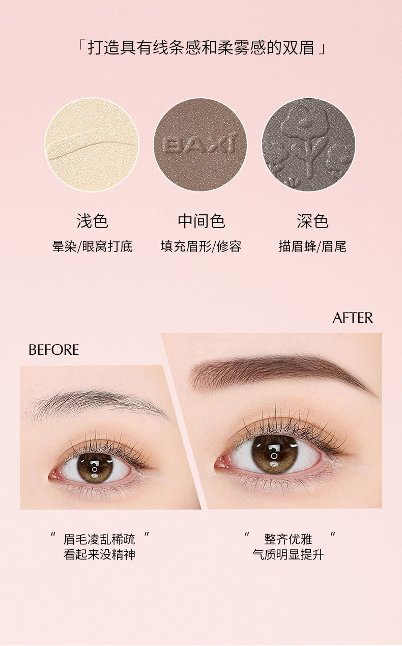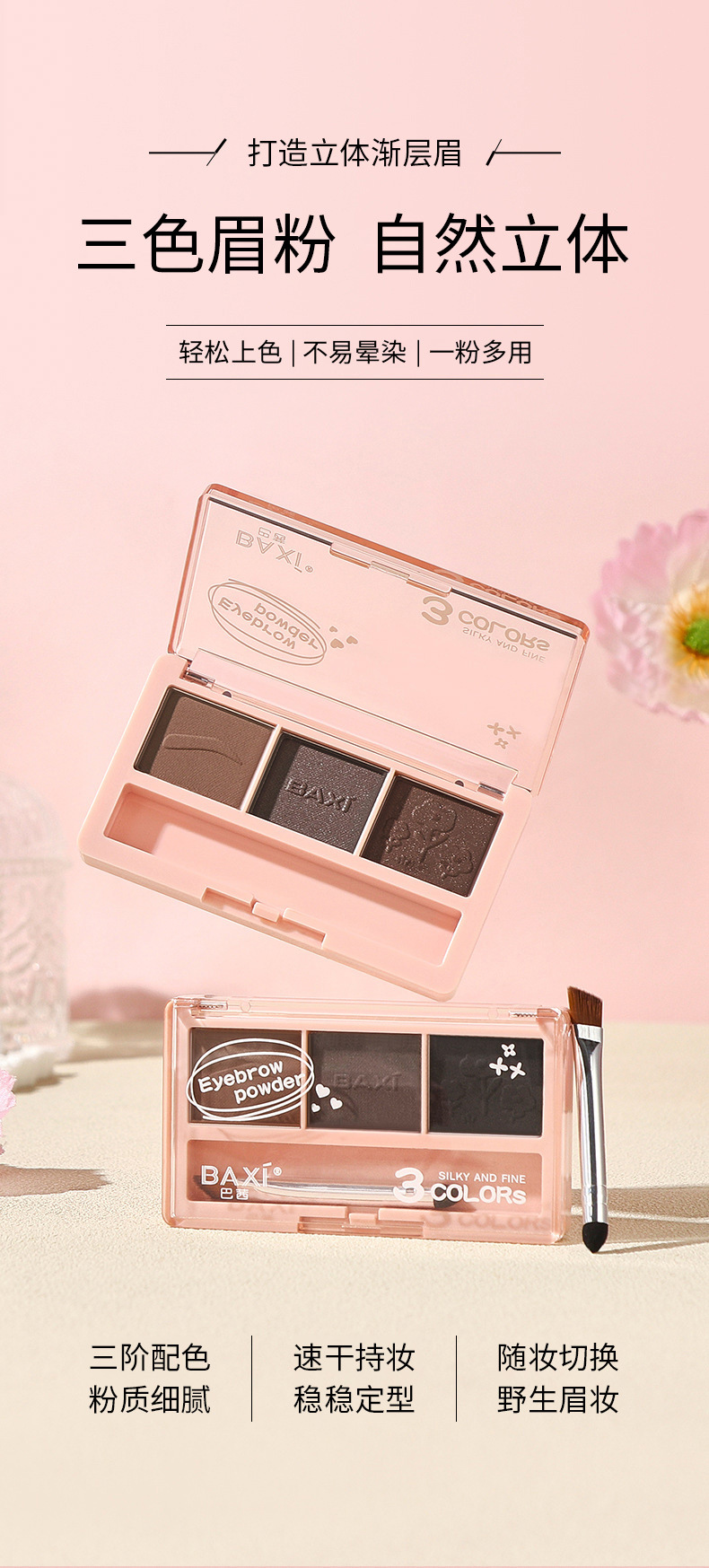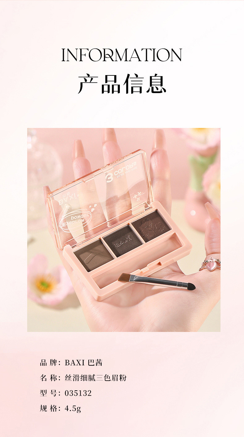 BAXI三色眉粉自然立体易上色耐水汗不易脱色野生眉刷笔膏初学者专供出口 投诉
