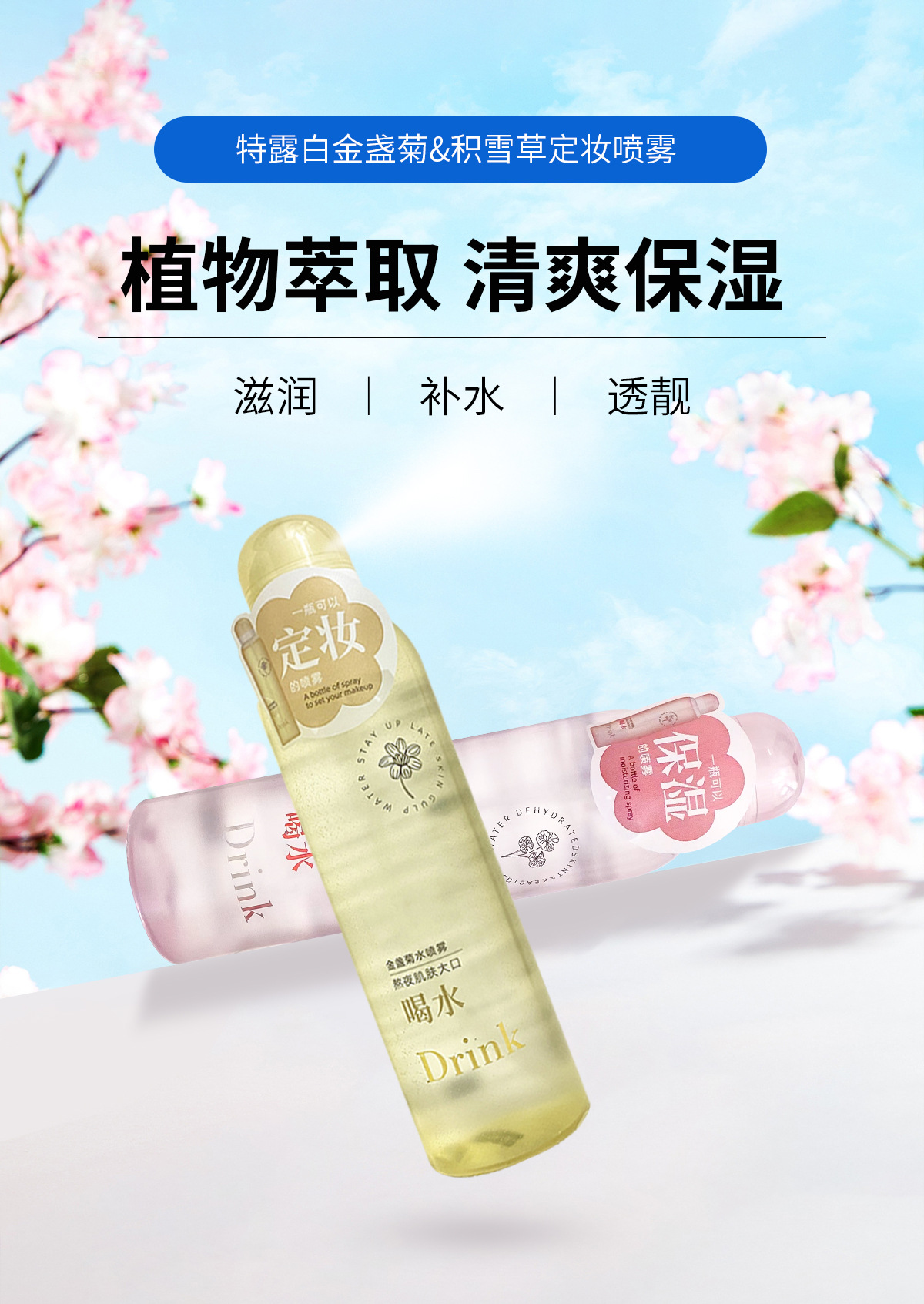 特露白金盏菊维稳定妆喷雾水补水滋润定妆喷雾持久不脱妆不卡粉