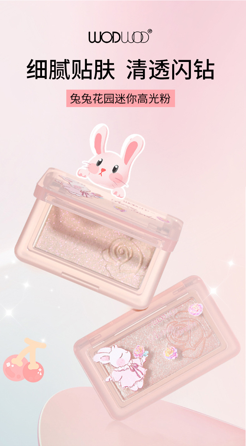 WODWOD喔喔兔兔花园迷你高光粉3g自然立体提亮闪粉偏光细闪一体盘