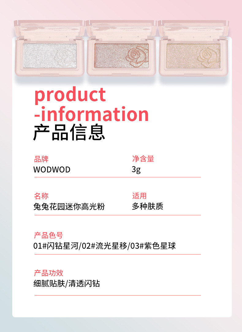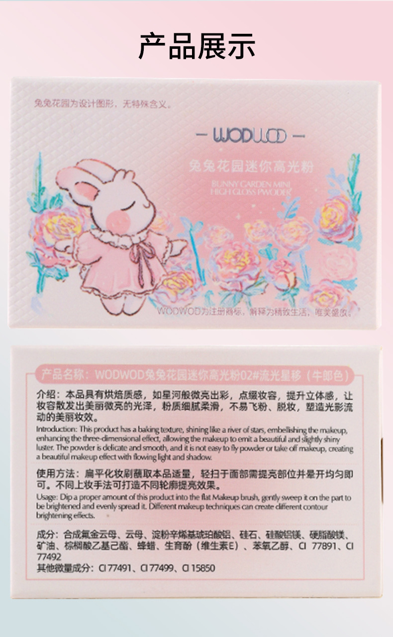 WODWOD喔喔兔兔花园迷你高光粉3g自然立体提亮闪粉偏光细闪一体盘专供出口 投诉