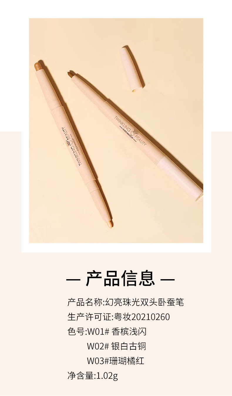 WODWOD喔喔幻亮珠光双头卧蚕笔 ins学生甜美闪亮眼线笔细闪高光笔专供出口 投诉