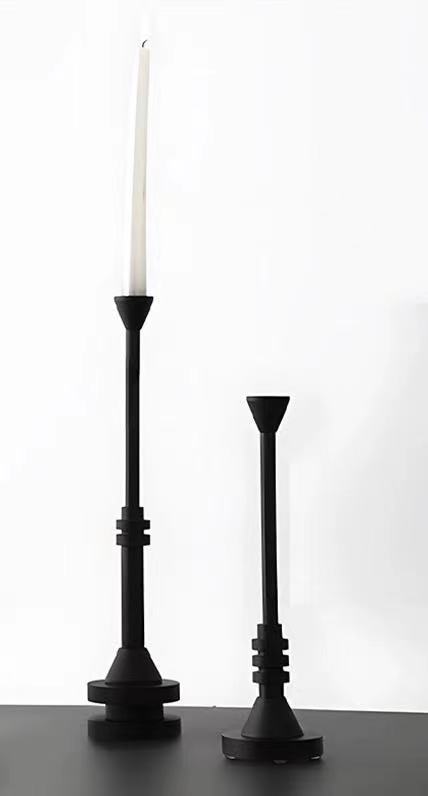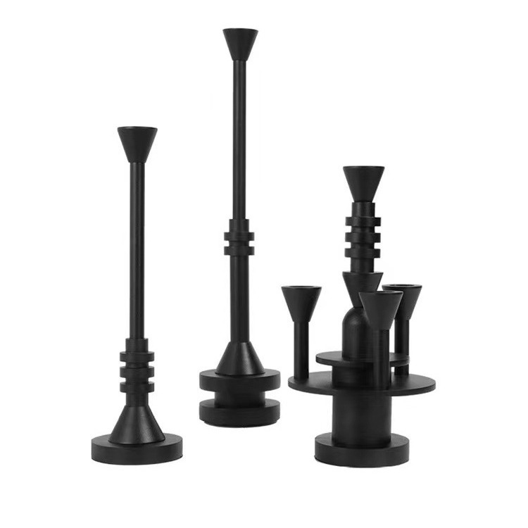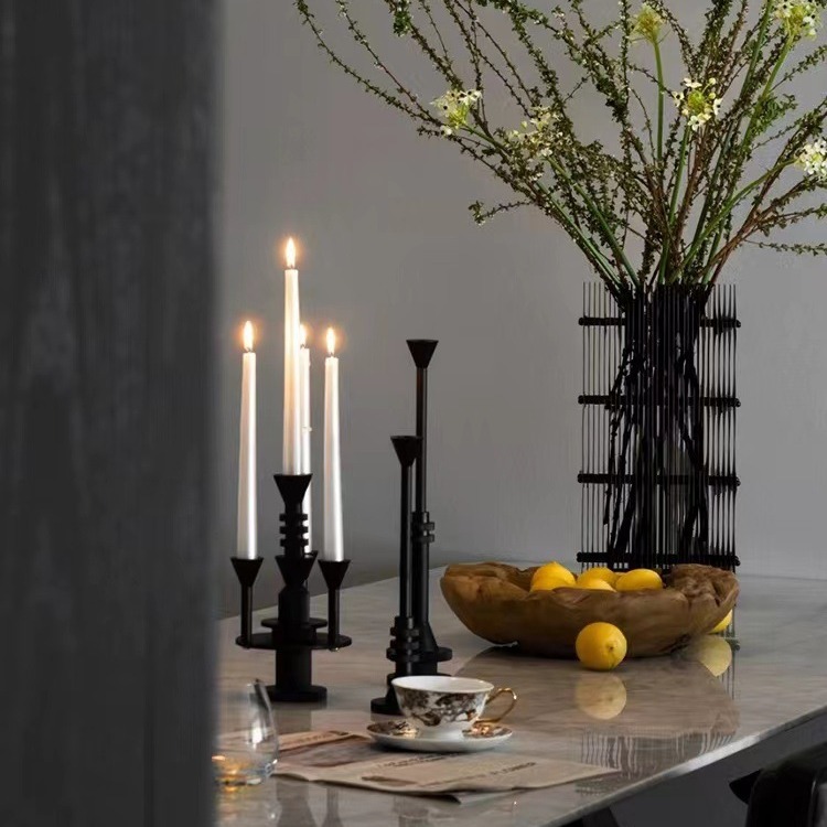 现代极简轻奢砂黑烛台摆件金属餐桌玄关柜样板房软装饰品