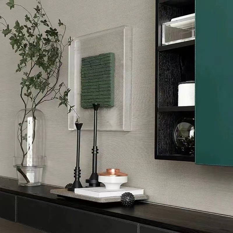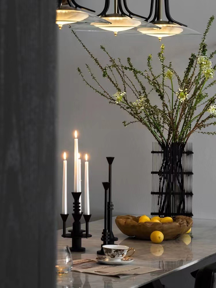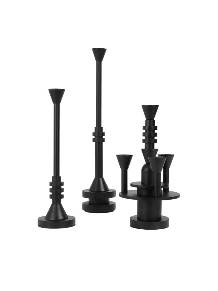 现代极简轻奢砂黑烛台摆件金属餐桌玄关柜样板房软装饰品 投诉