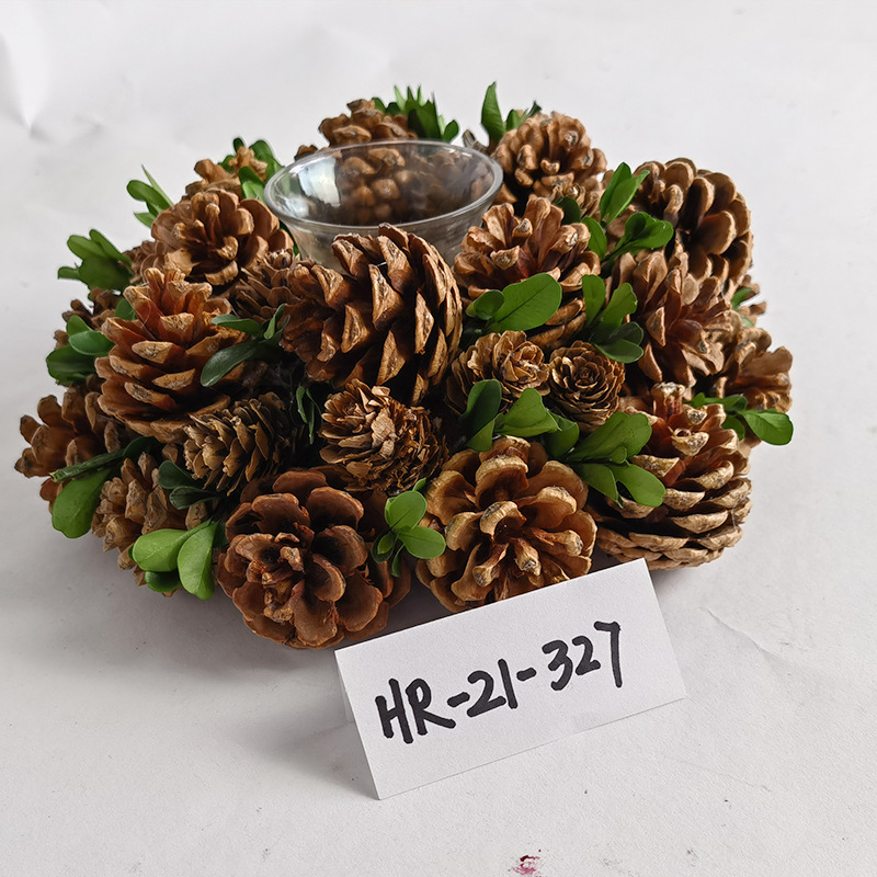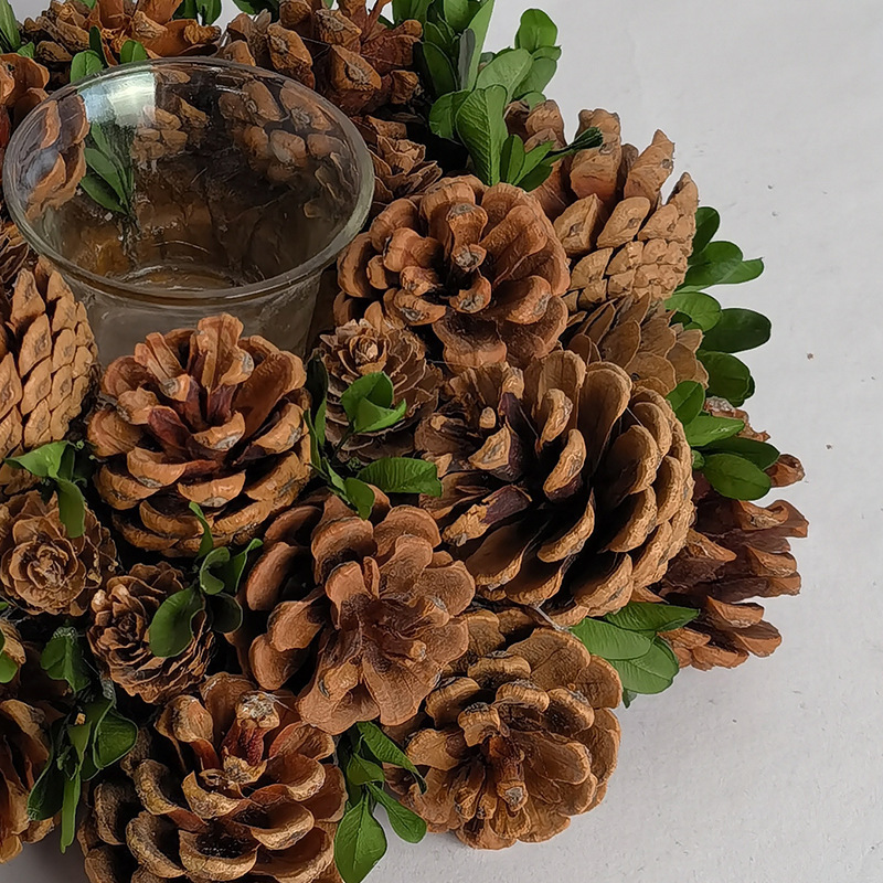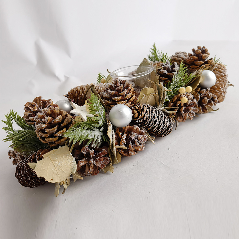 松果烛台 烛台装饰橱窗桌面摆件松果松针田园乡村蜡烛台Christmas