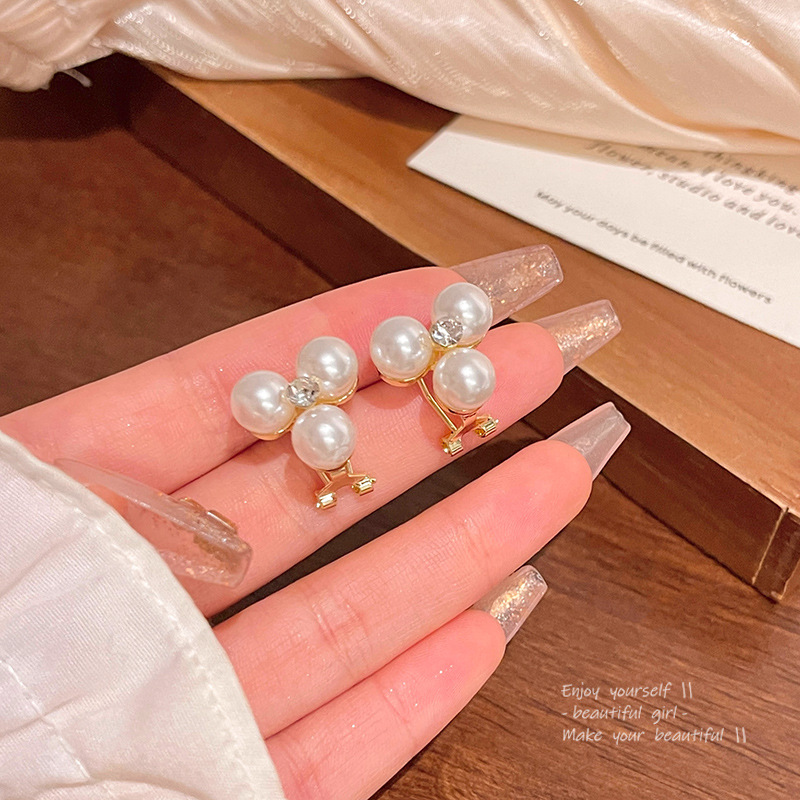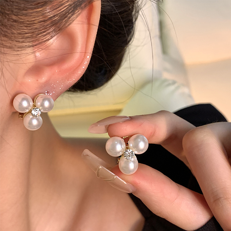 S925银针轻奢小众简约珍珠耳钉女独特设计感百搭气质锆石耳环耳饰