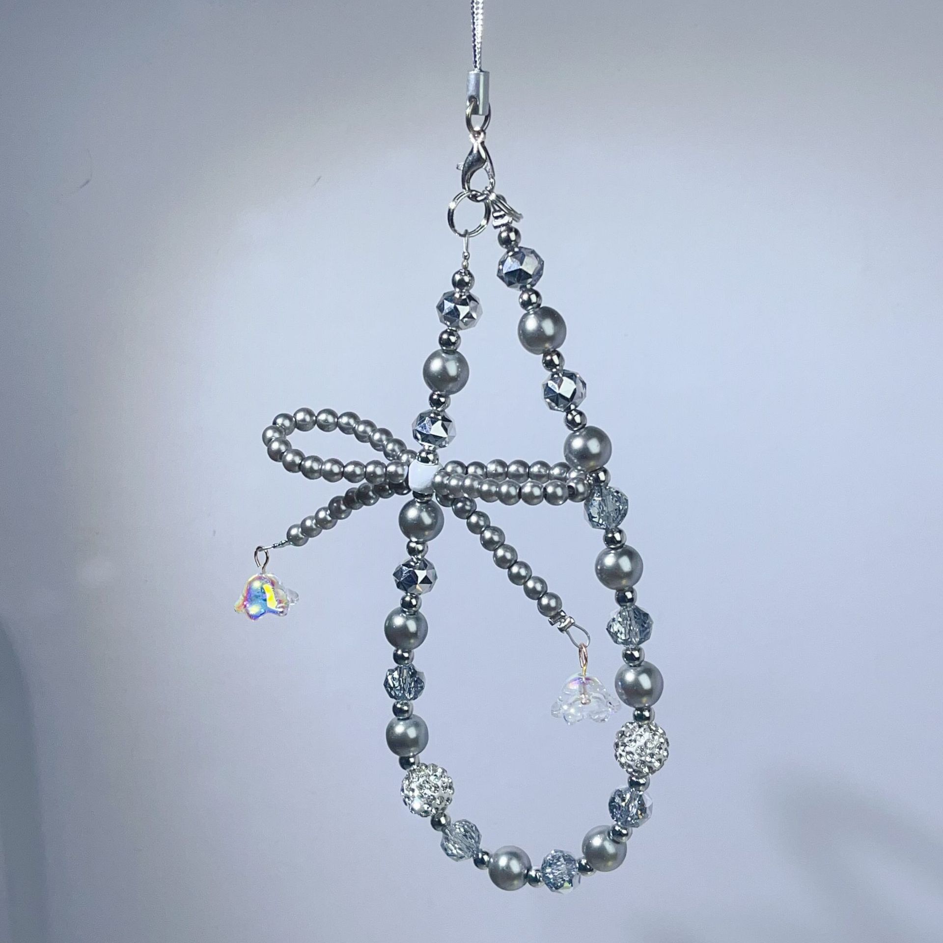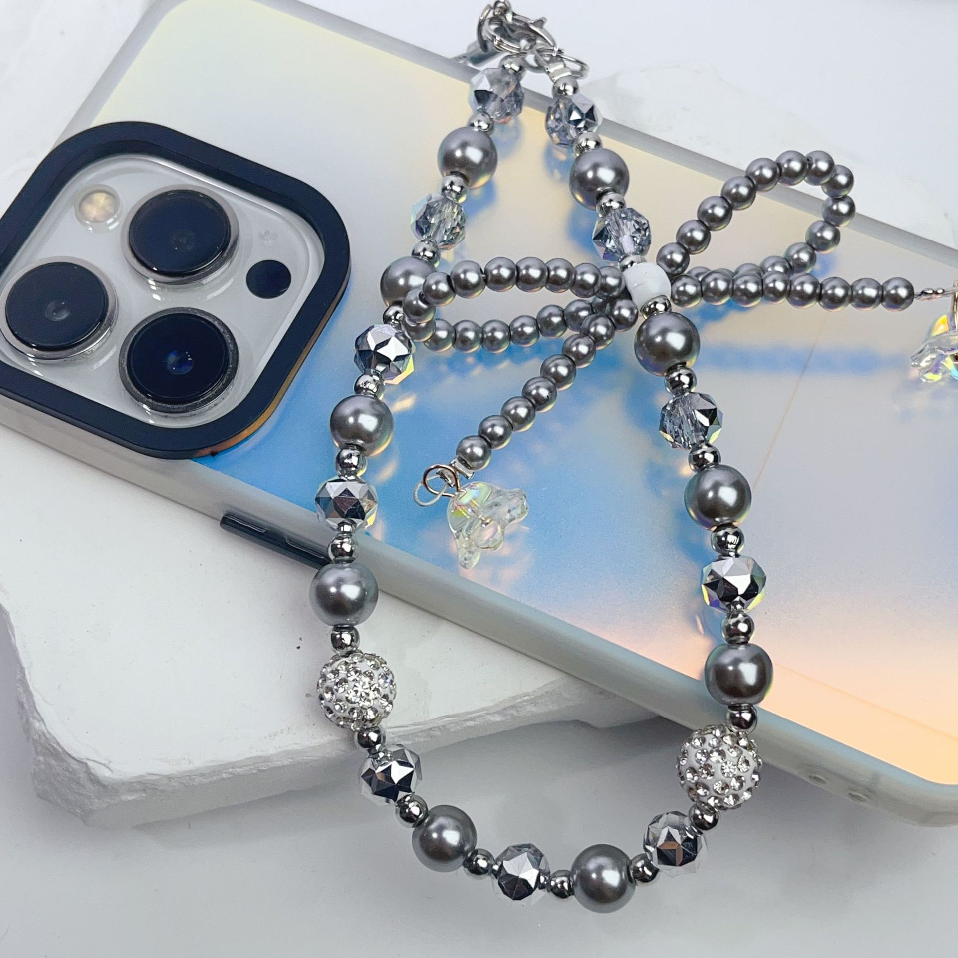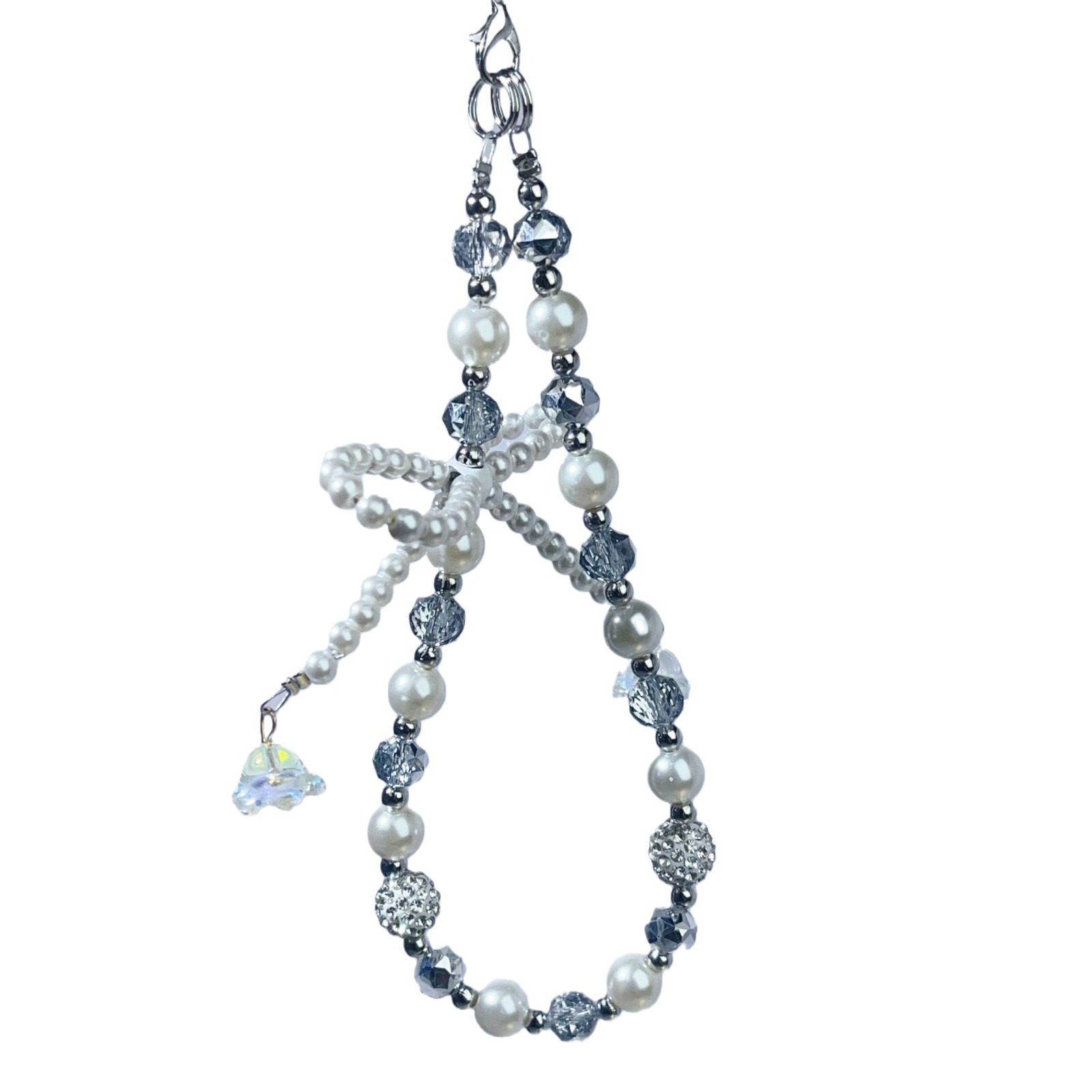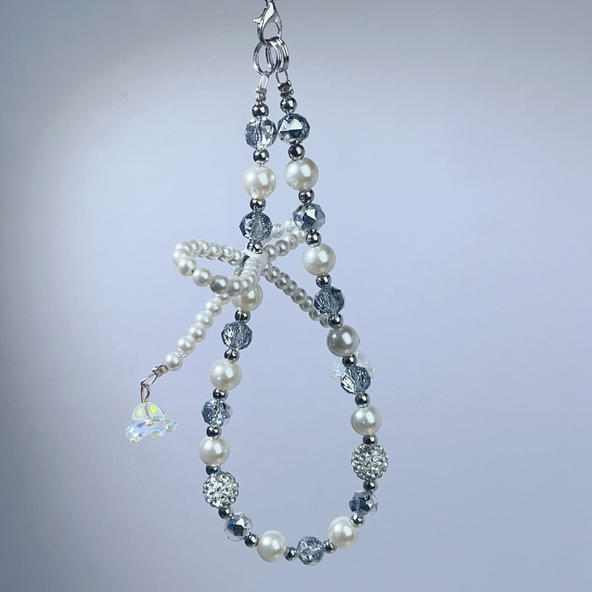 创意新款珍珠蝴蝶结手机链花球水晶手机壳挂绳包包钥匙扣串珠挂件