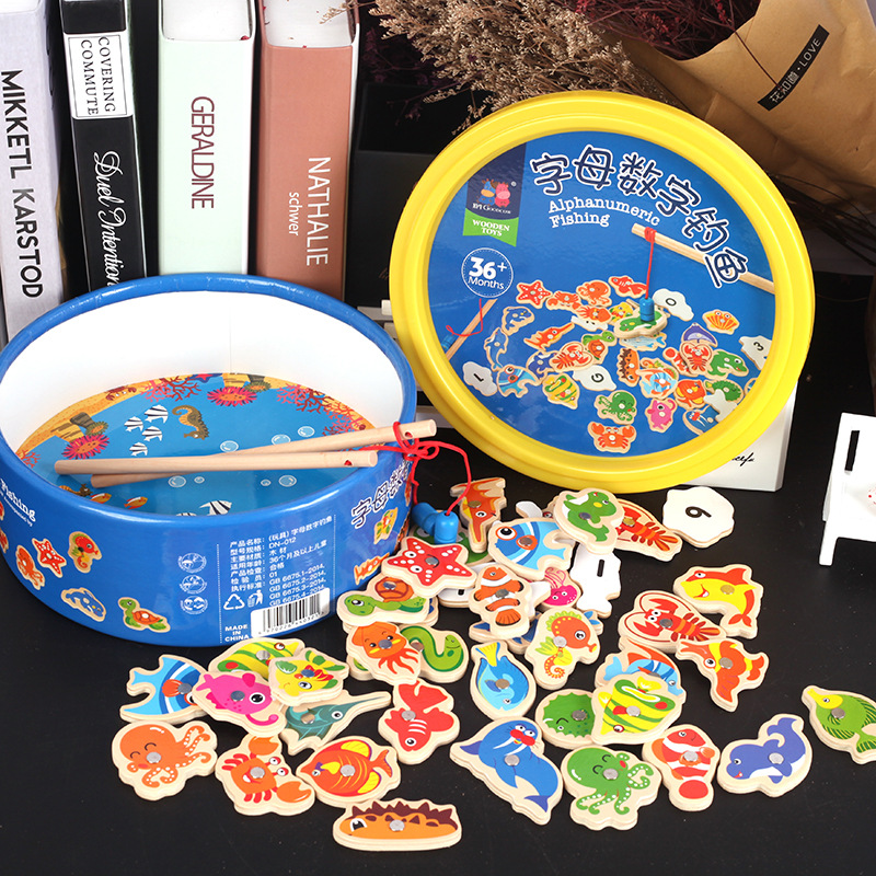 厂家批发木制幼儿字母数字认知儿童协调锻炼早教益智桶装钓鱼 English | 投诉