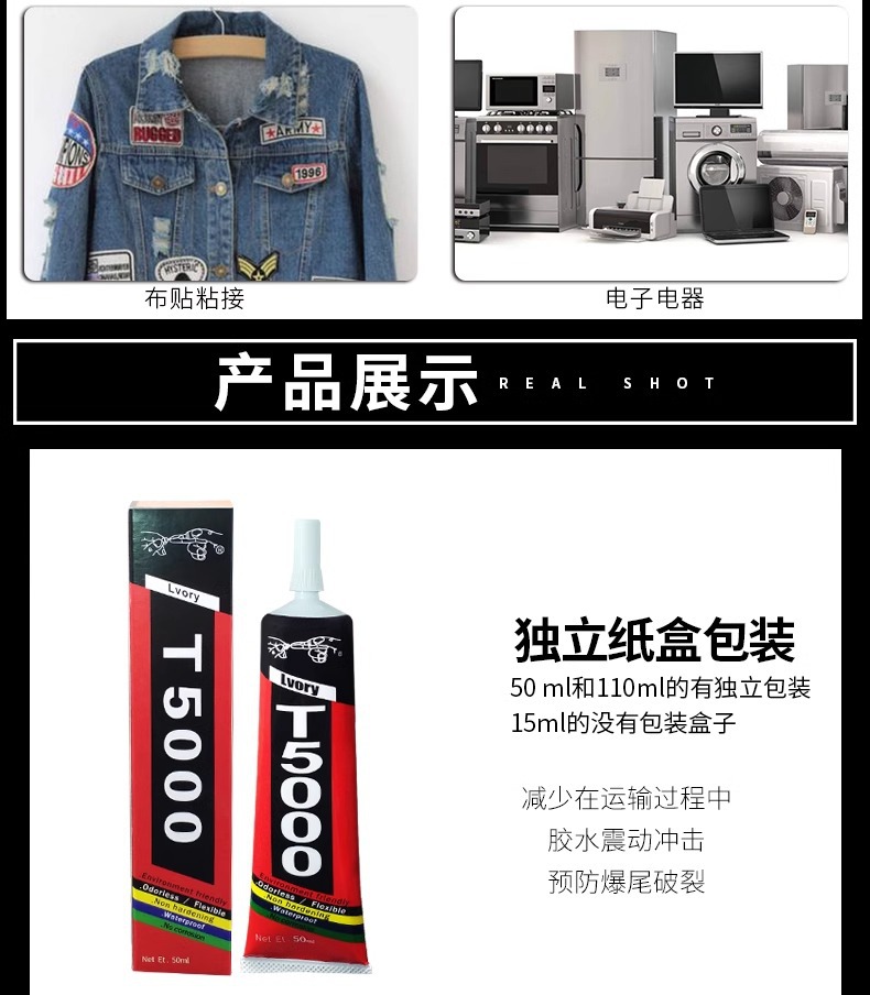 t5000白色胶水粘手机屏幕翘屏边框支架补钻饰品塑料软性通用胶水 投诉
