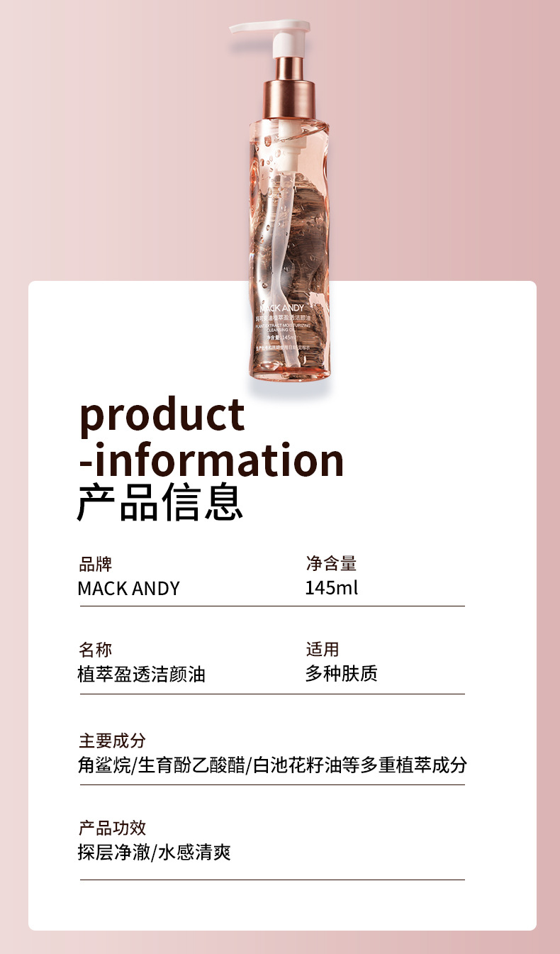 玛可安迪植萃盈透洁颜油 温和不刺激深层清洁眼唇脸三合一卸妆油