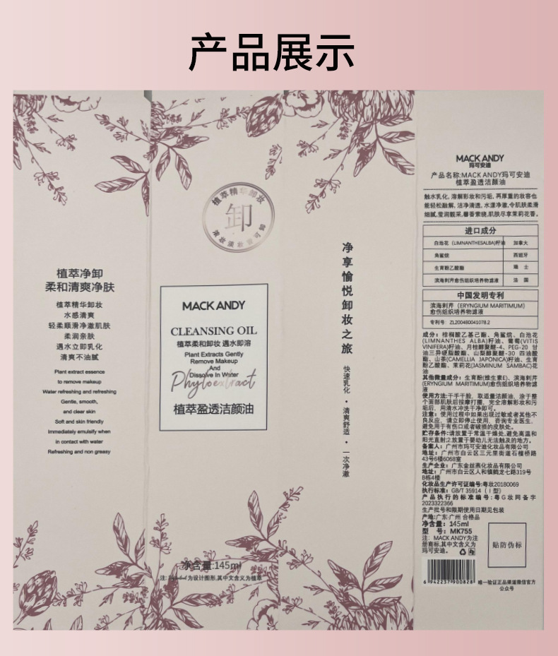 玛可安迪植萃盈透洁颜油 温和不刺激深层清洁眼唇脸三合一卸妆油专供出口 投诉