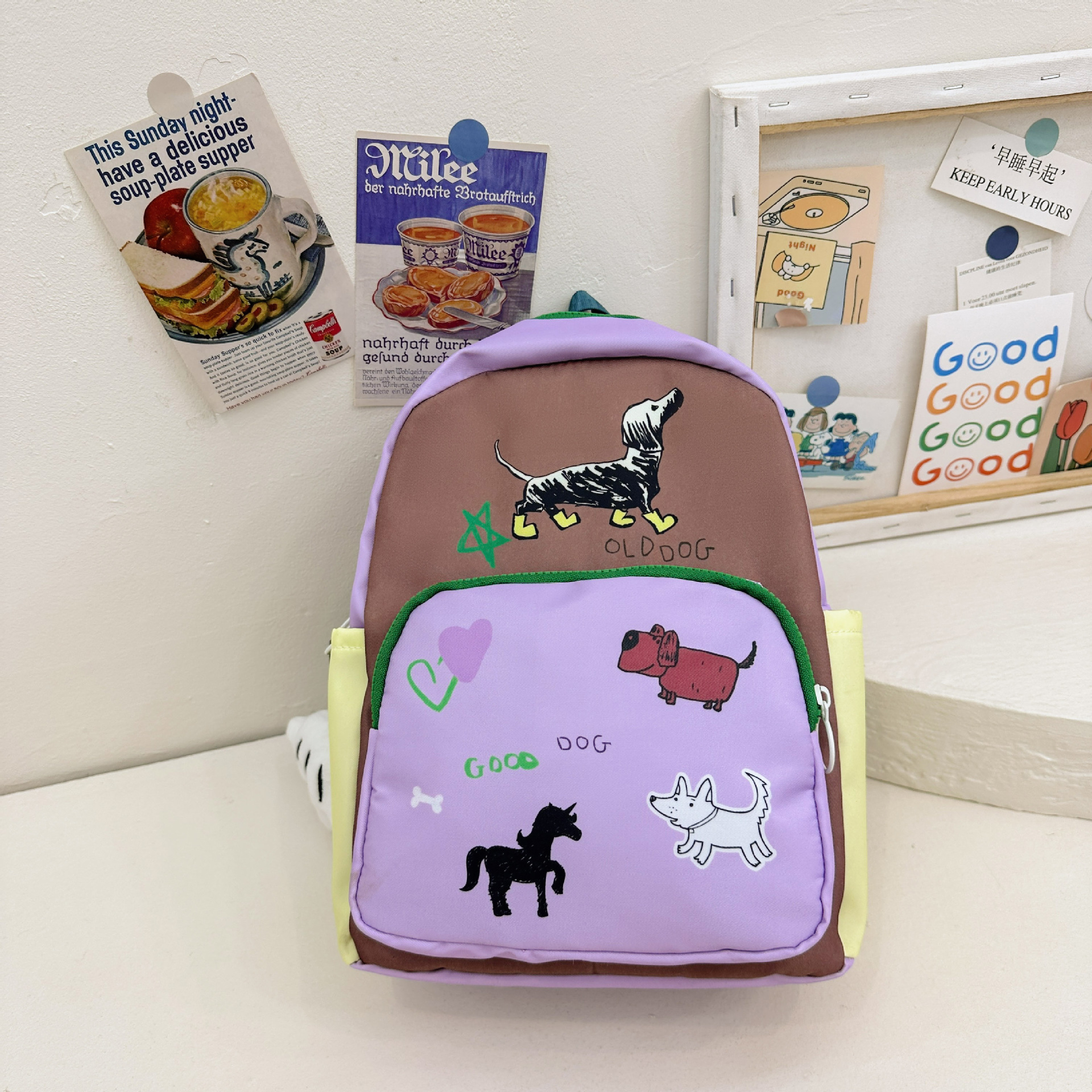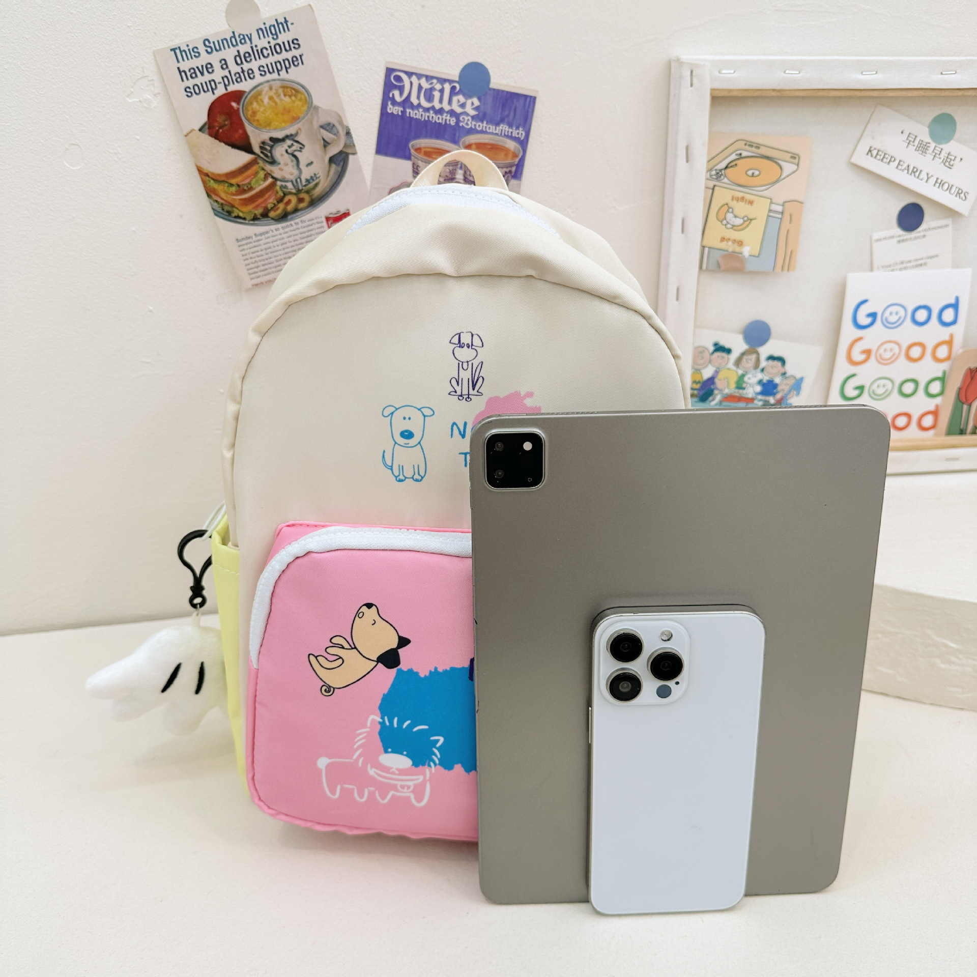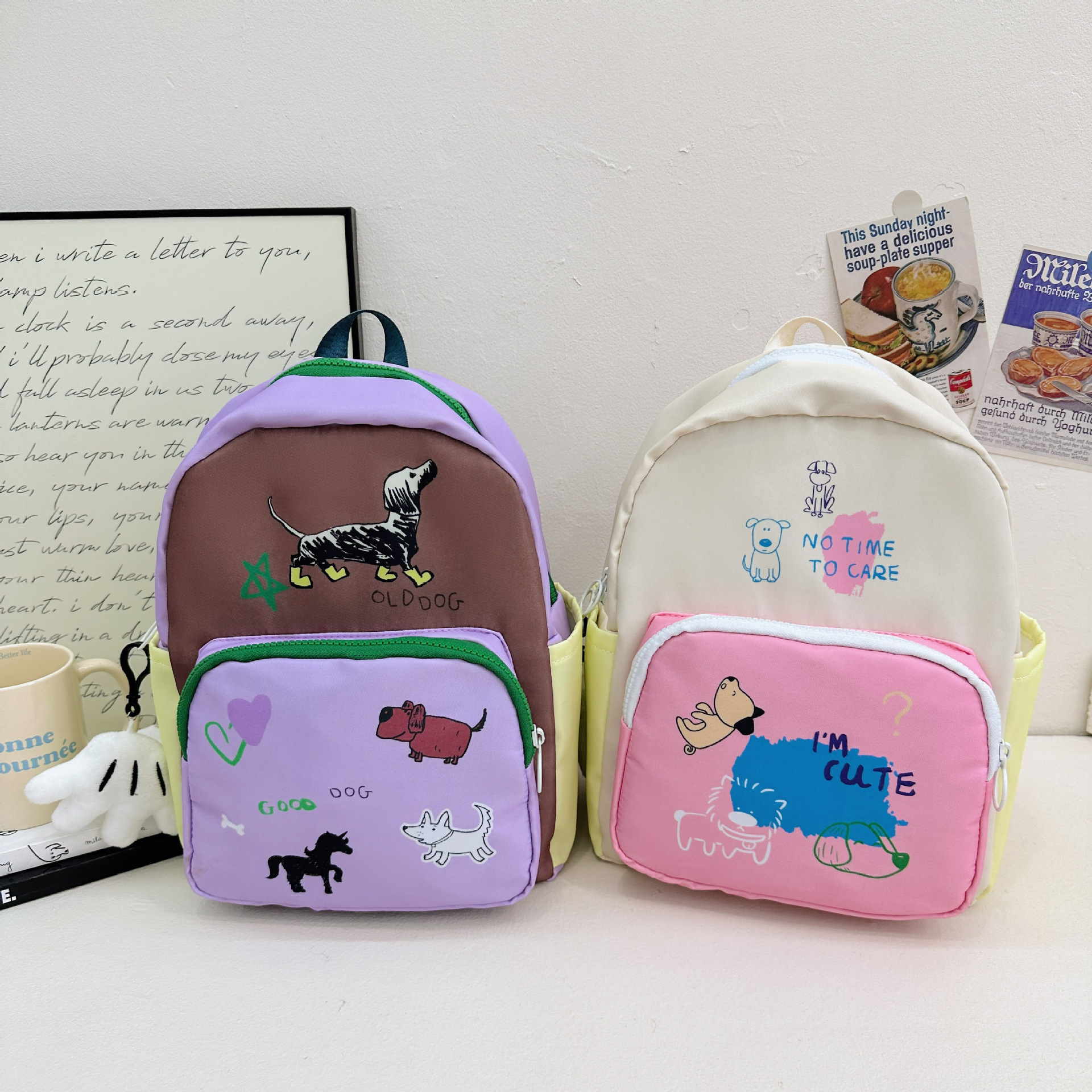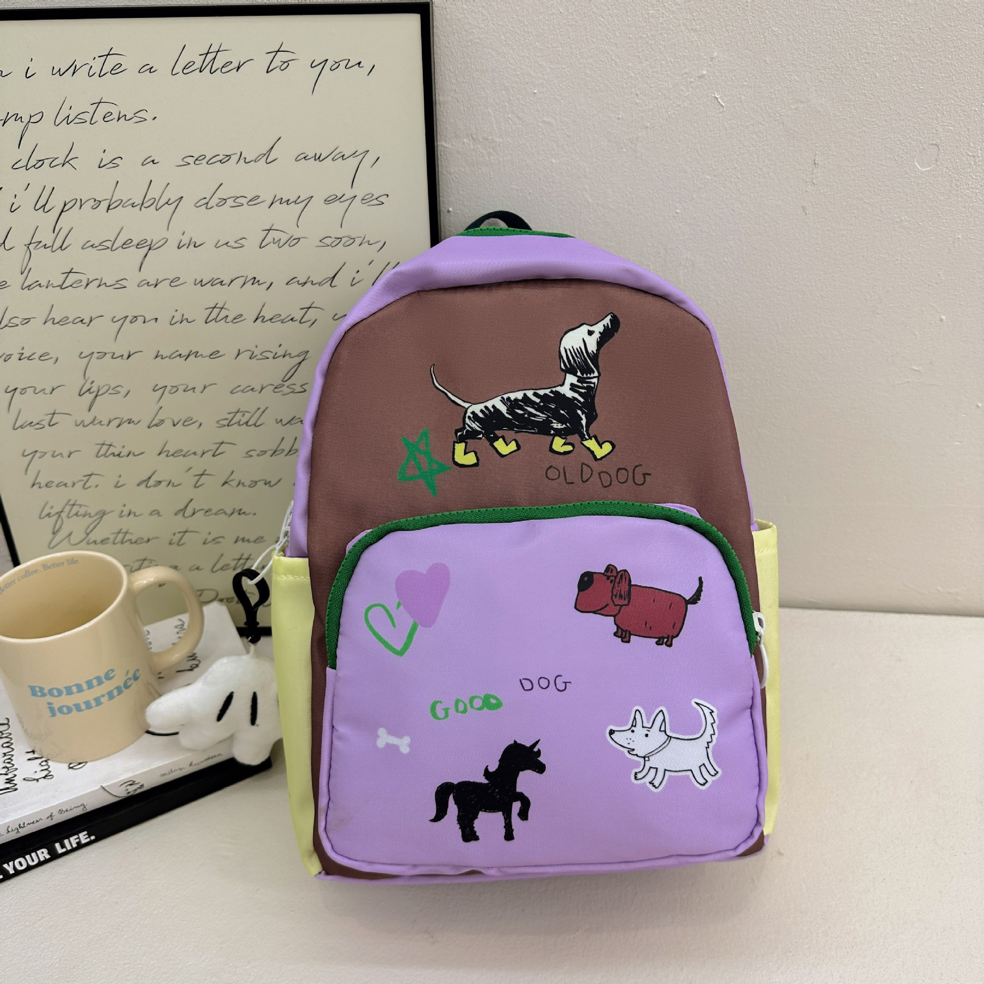 原创小众双肩包女涂鸦设计感活力文艺拼色学生书包高中生通勤校园