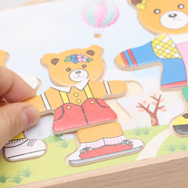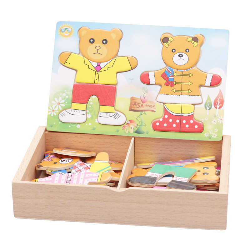 厂家直销小熊换衣儿童早教木质拼图穿衣游戏宝宝木制益智积木玩具