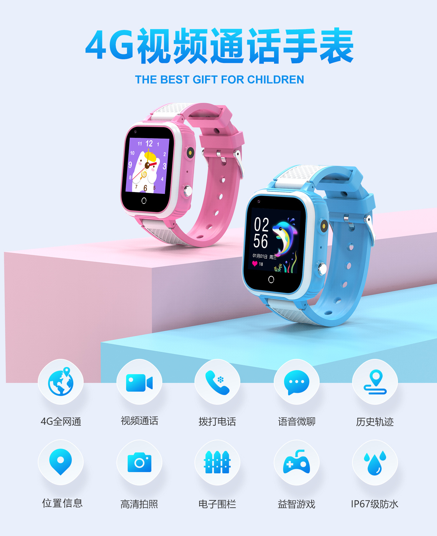 【儿童手表系列】:防水彩屏触摸屏儿童手表:4G手表