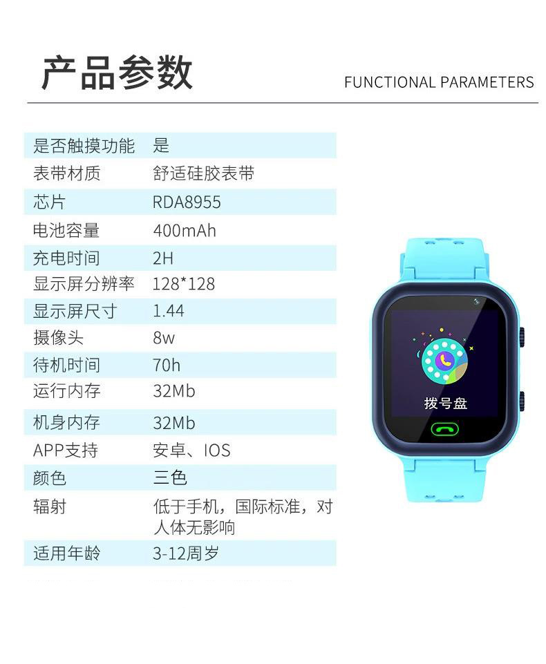 【新 款 优 势】:4代儿童智能手表,带有自由拔号键盘,无需存号码,可方便拔打电话。新增:闹钟功 能,和学习灯,口算题等功能。礼品、教育、银行积分兑换等行业的活动。售后率低!