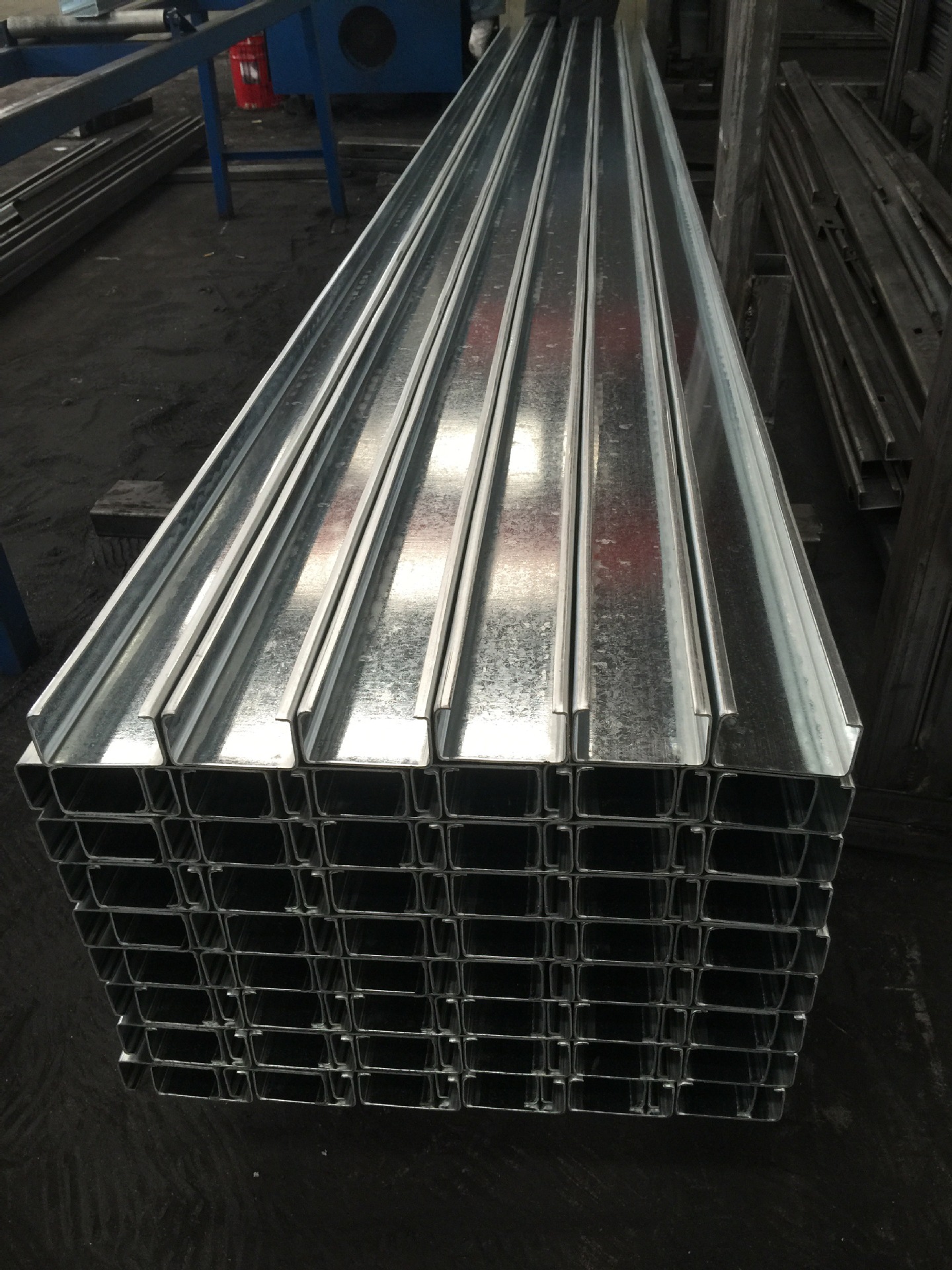 工厂实力:我厂拥有一批生产C型钢、Z型钢、U型钢、帽型钢(几型钢)、太阳能光伏支架经验丰富的机械工程师、技术工人,并拥有12条的生产线,我厂产品规格多、成型好、孔位准、角度直、平整度好,年产量可达6万吨左右!